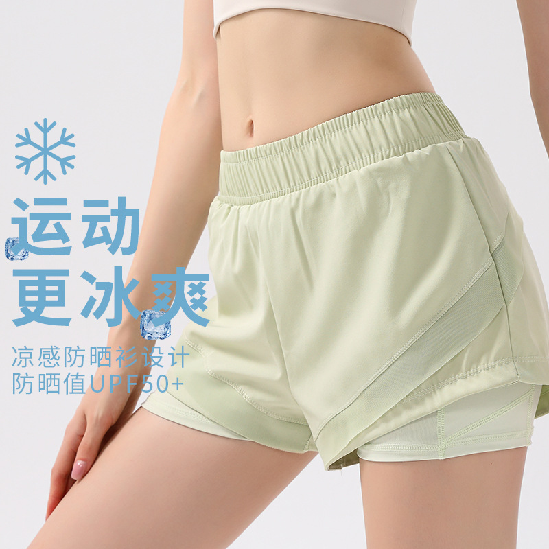 | nameOriginal | Sky Blue IuIu plus size Cool Sports and Leisure Yoga Shorts Fitness Mid-high Waist Loose Anti-running Fake Two Pieces |