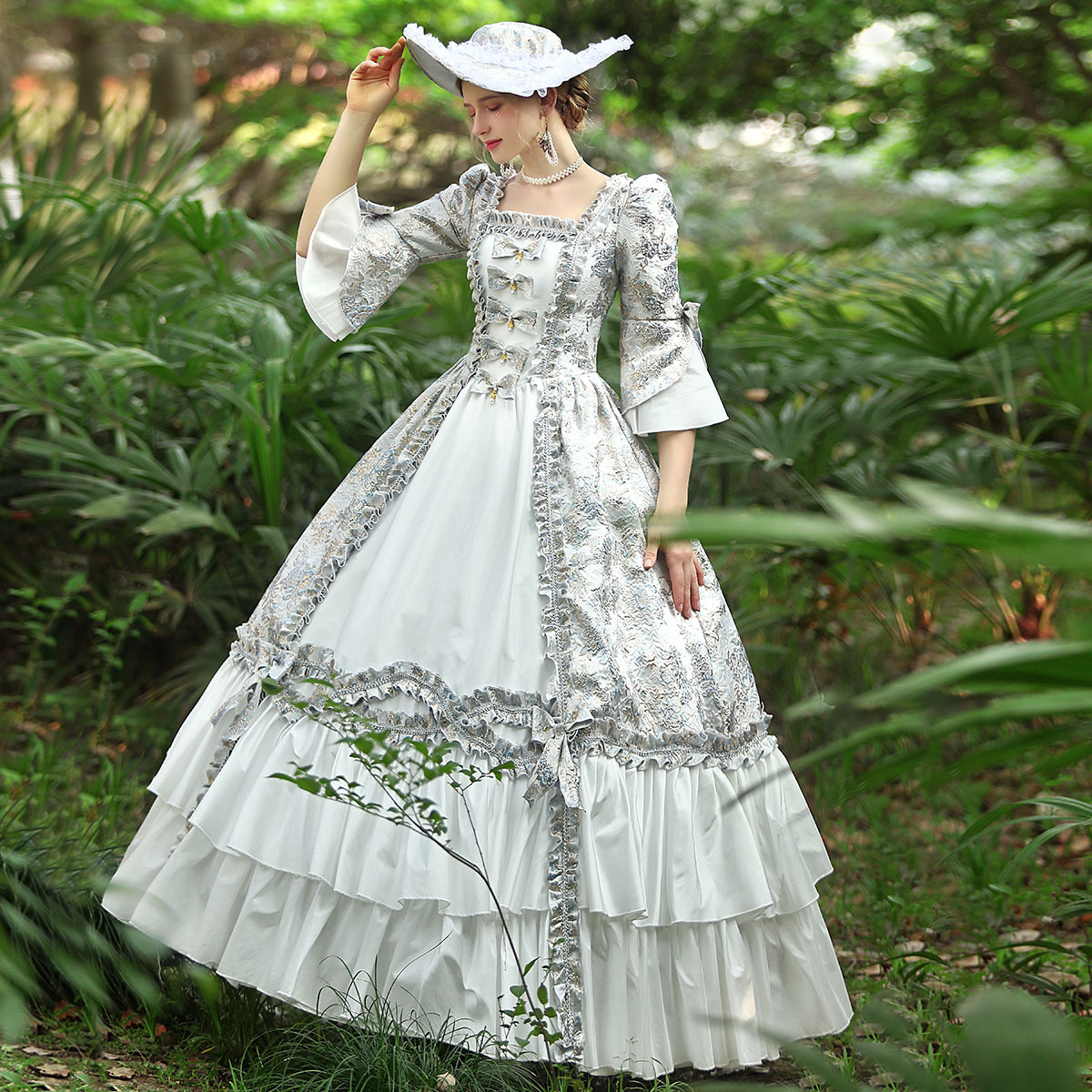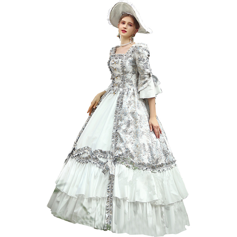 | nameOriginal | Sky Blue Jacquard Court Oil Painting Dress Tea Break Photo Dance Annual Drama Queen British Princess Costumes |