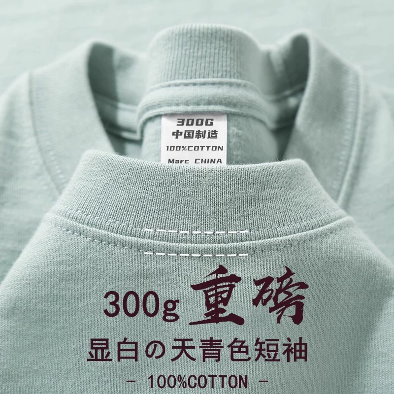 | nameOriginal | Sky blue Xinjiang cotton heavyweight 300g pure white opaque short-sleeved t-shirt men's loose casual bottoming shirt top women summer |