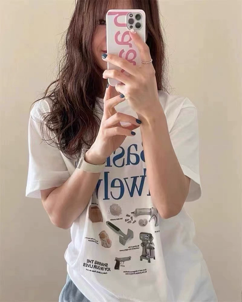 | nameOriginal | Sleep late casual round neck T-shirt with various elements printing |