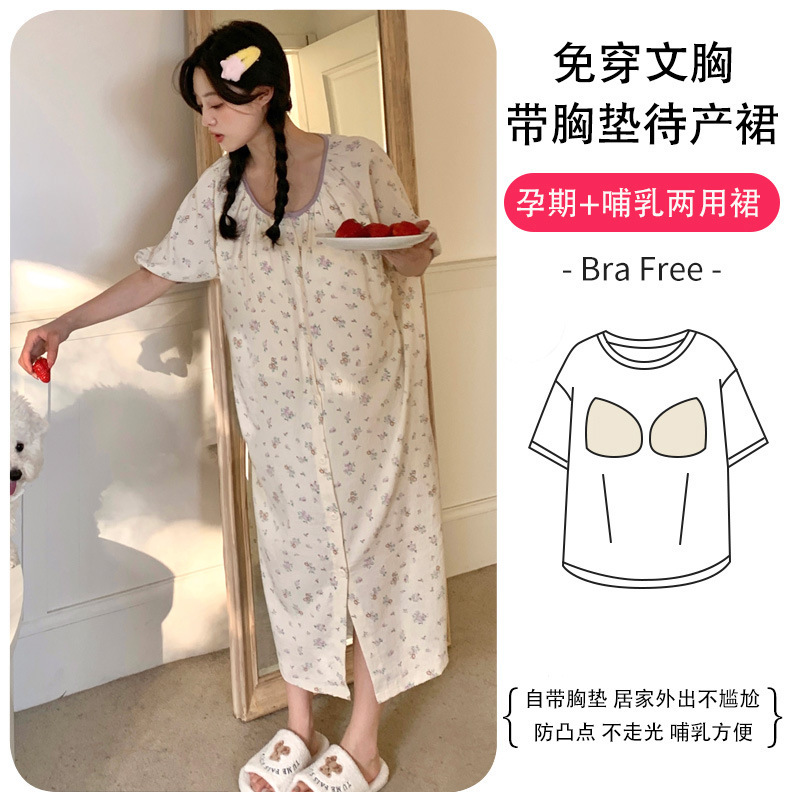 Sleeping Beauty Pregnant Women's Nightdress Women's Summer Short-sleeved Cloud Cotton Nursing Pajamas Postpartum Home Clothes F2933