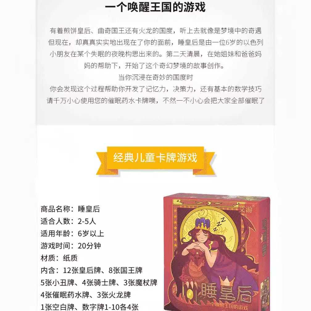 | nameOriginal | sleeping queen Board Game Card Children sleeping queen Children Board Game Card Educational Parent-Child sleeping queen |