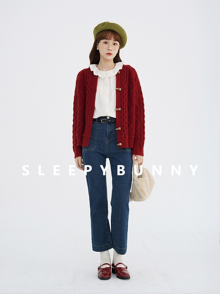 | nameOriginal | Sleepy Rabbit "The Tenderness and Passion of the Rose Girl" Horn Button Sweater Jacket Retro Red Knitted Cardigan |