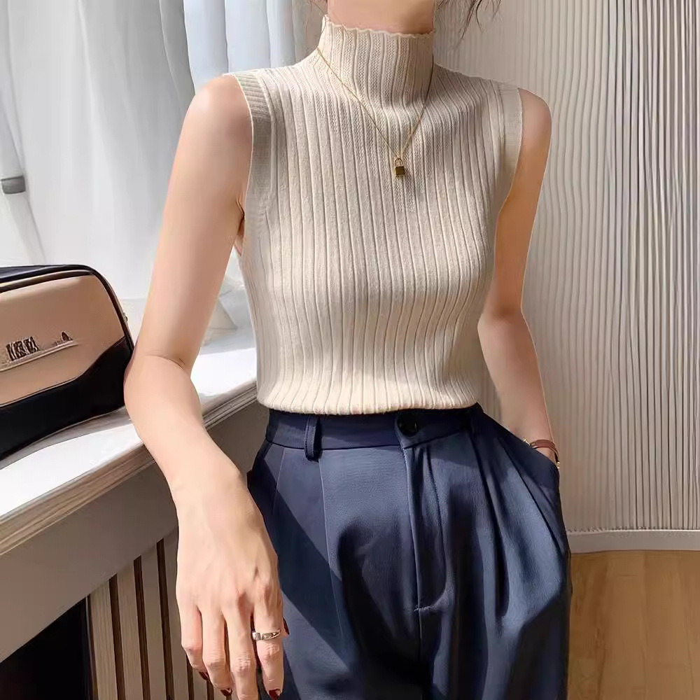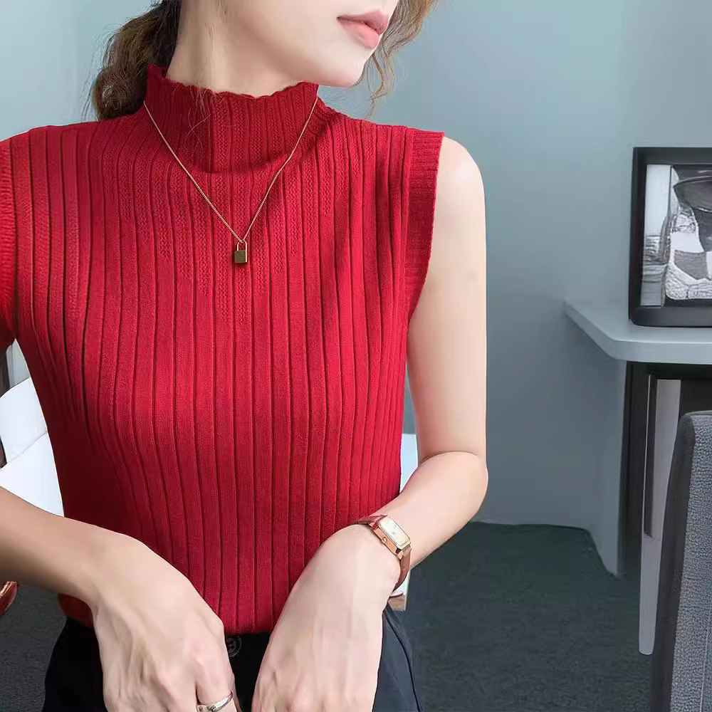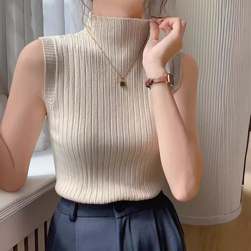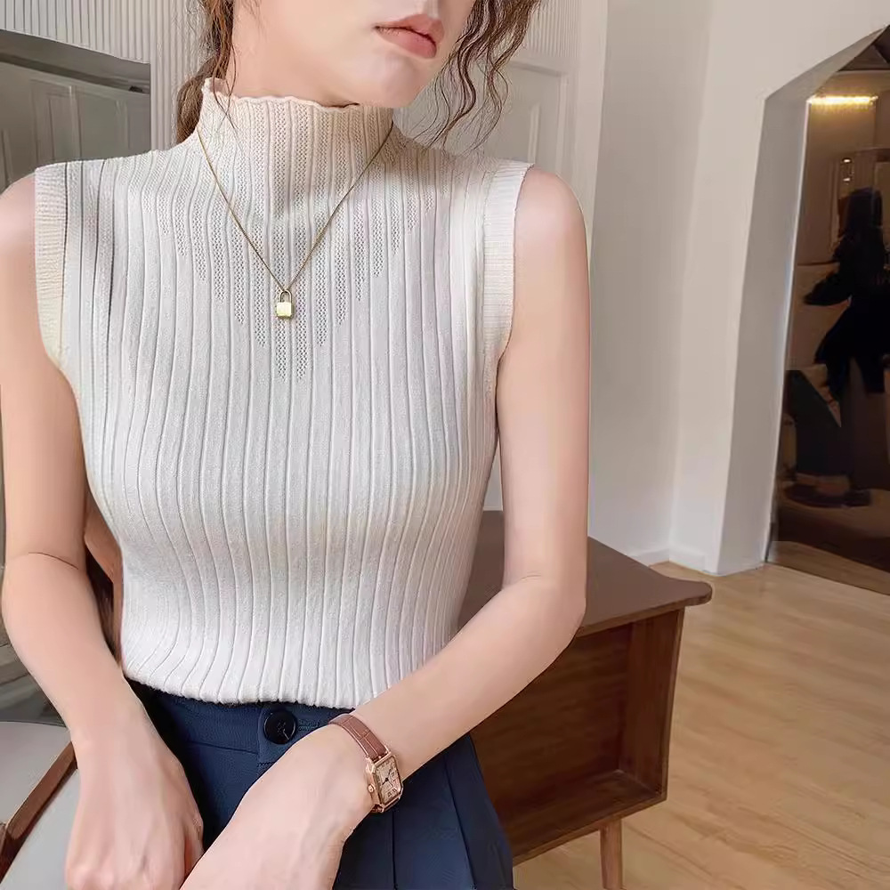 | nameOriginal | Sleeveless Base Shirt Women's 2024 New Spring and Autumn Half-turtleneck Slim-fit Inner Knitted Camisole Sweater Top |