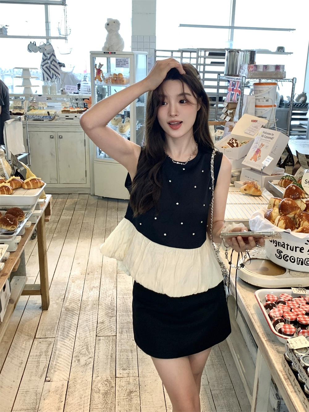 | nameOriginal | Sleeveless design with contrasting color splicing and niche chic nail polish |
