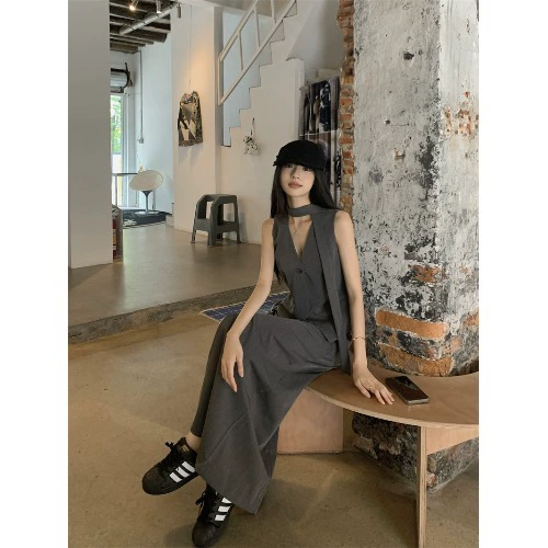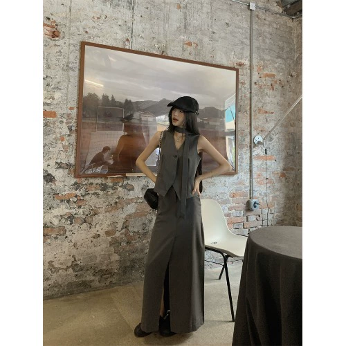 | nameOriginal | Sleeveless gray vest slit skirt suit |