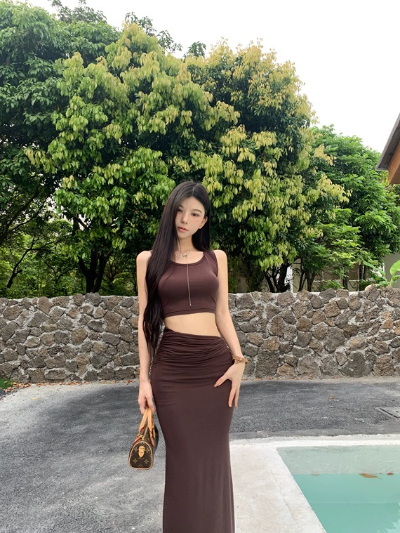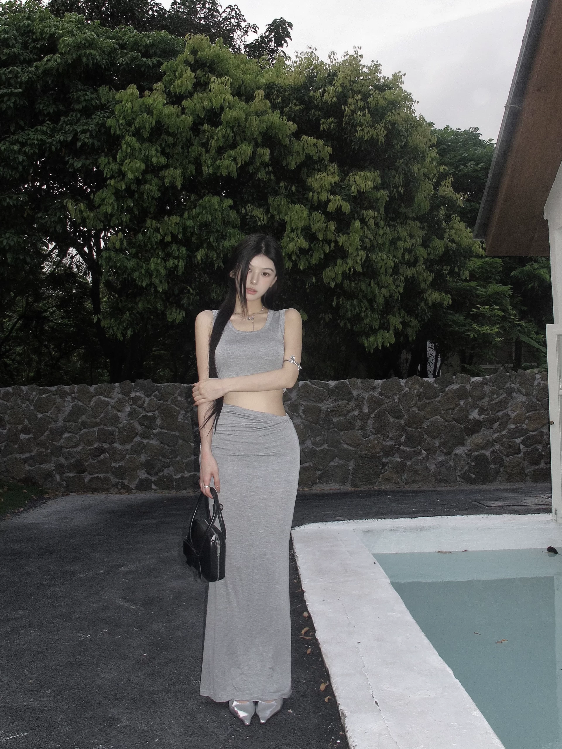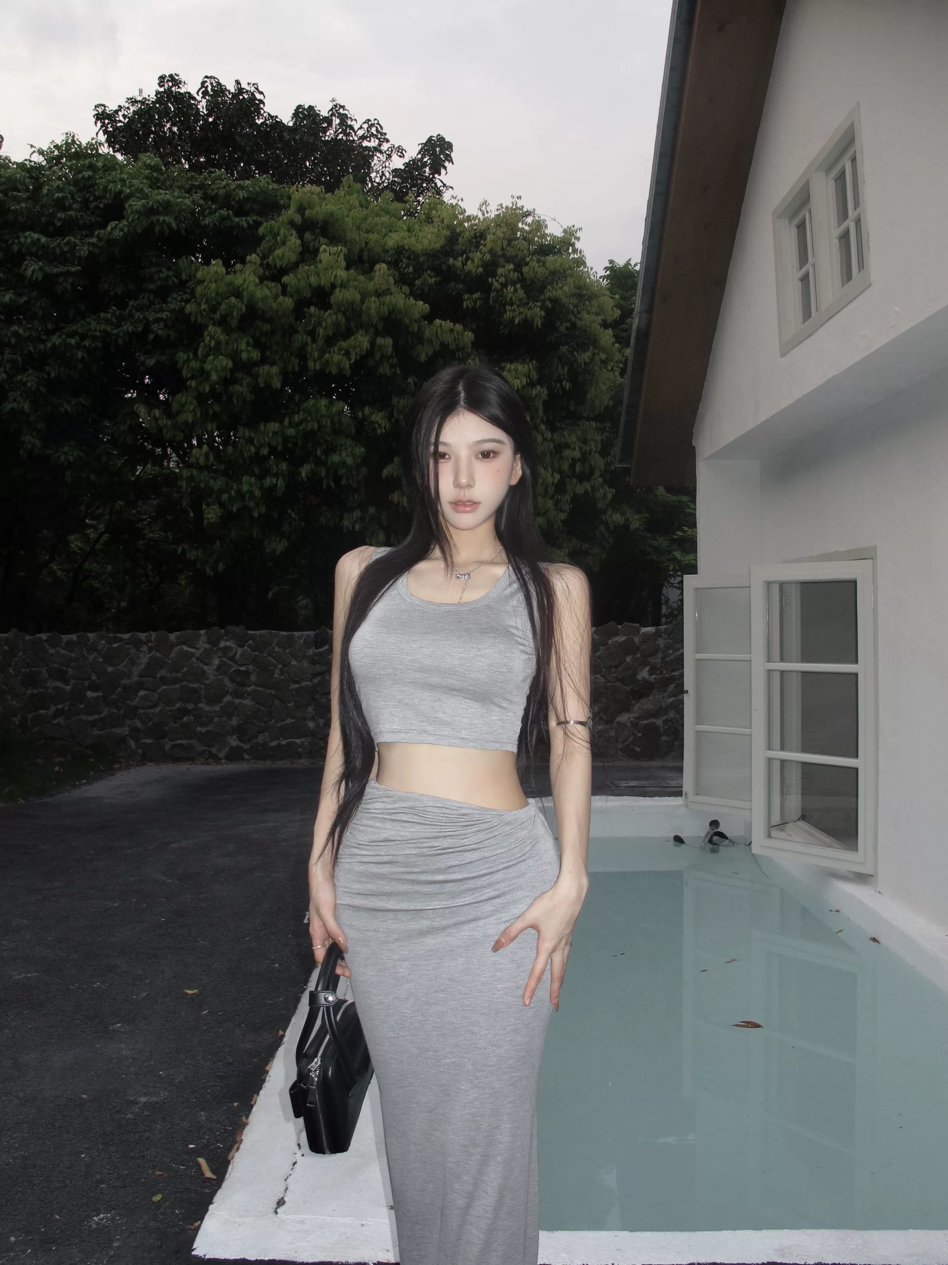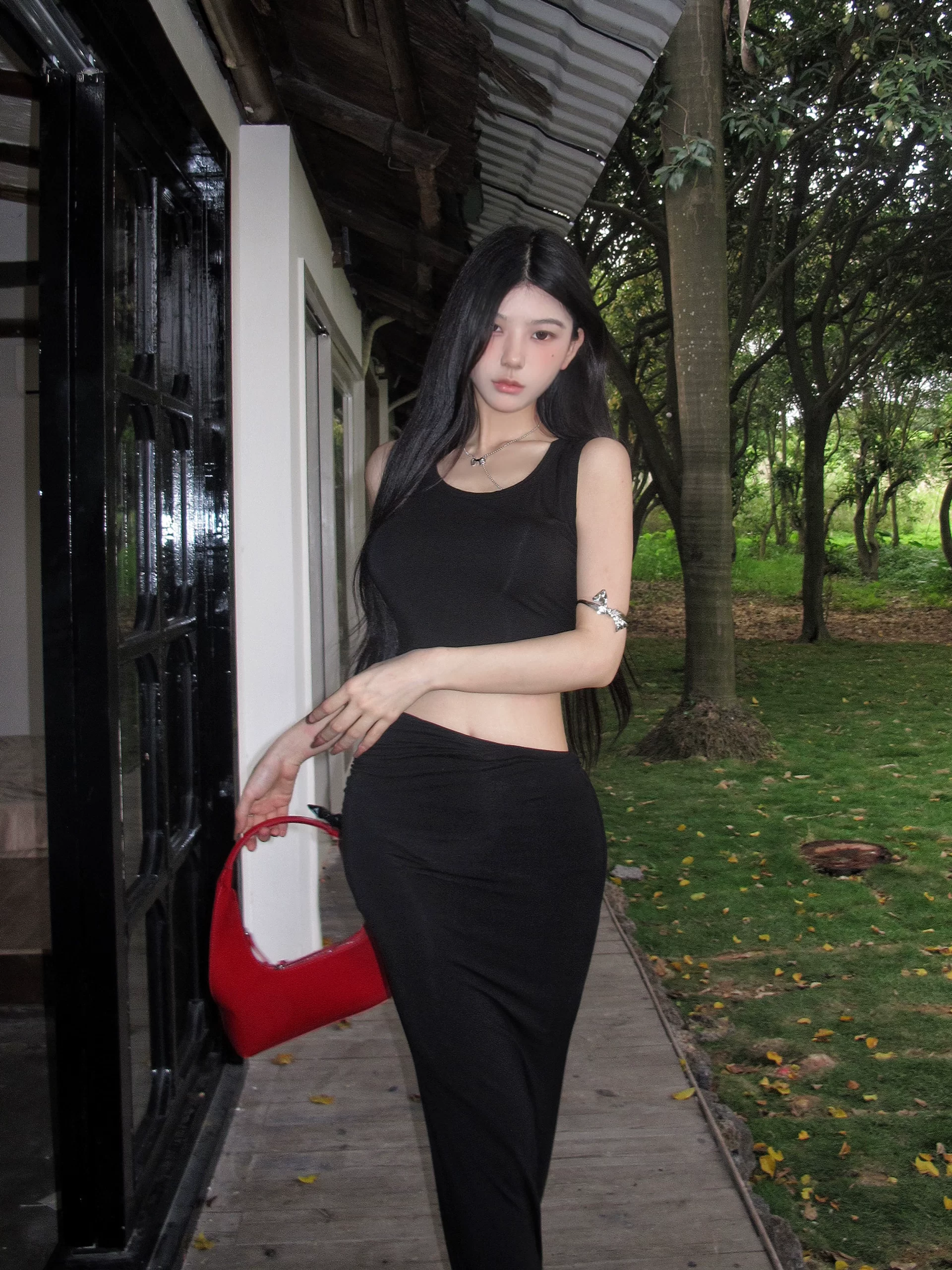 | nameOriginal | Sleeveless hip-hugging long skirt two-piece vest for pear-shaped body |