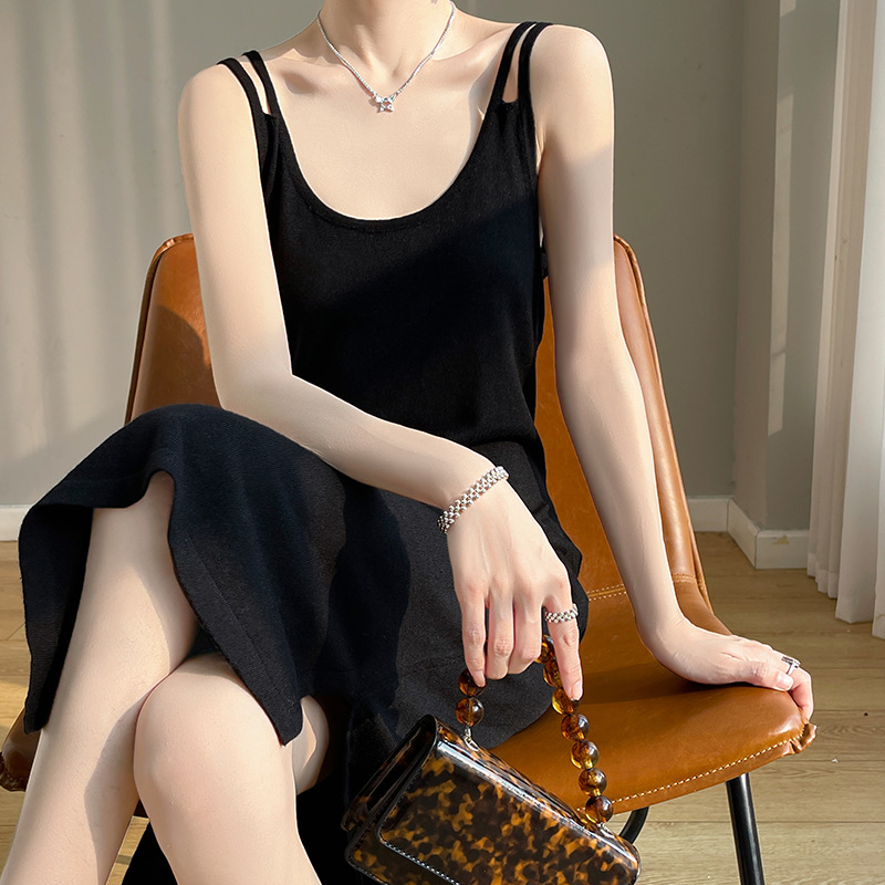 | nameOriginal | Sleeveless Knitted Vest dress Women's Summer New Retro High-end Elegant Inner Long Sling Skirt |