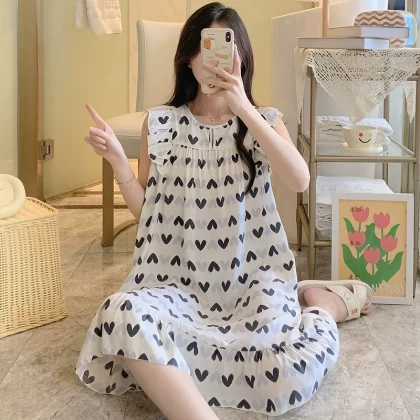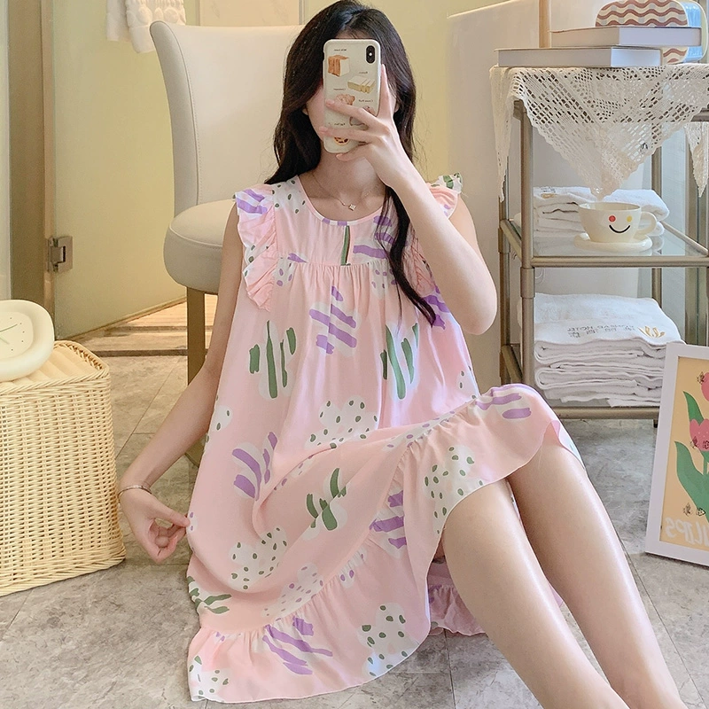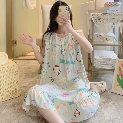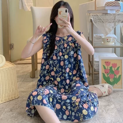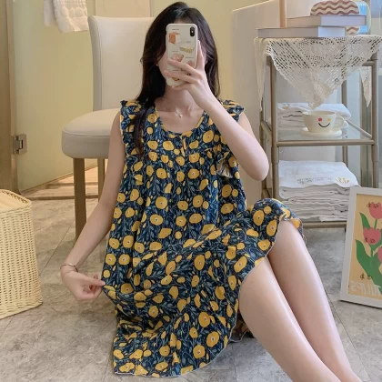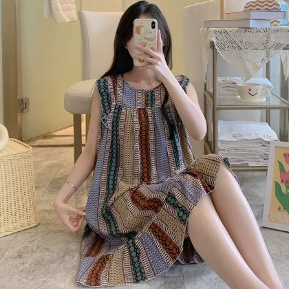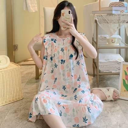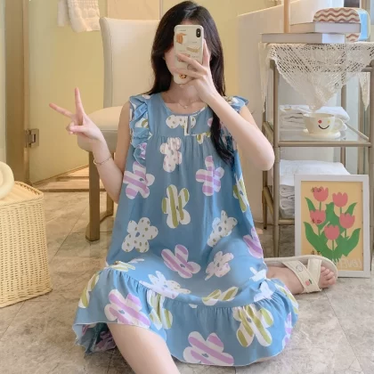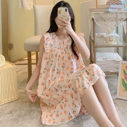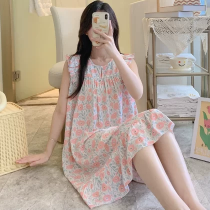 | nameOriginal | Sleeveless nightgown for women, spring and summer thin cotton silk pajamas, Japanese large flower artificial cotton silk, can be worn outside, home skirt, large size |