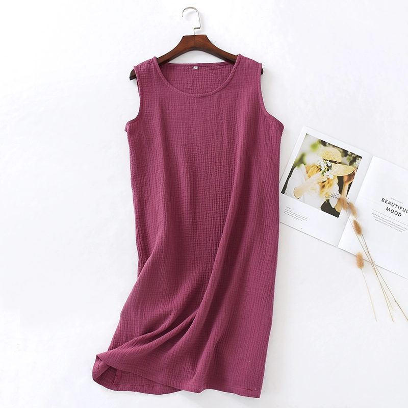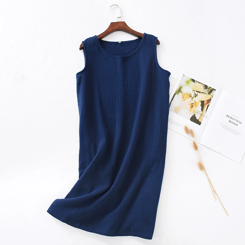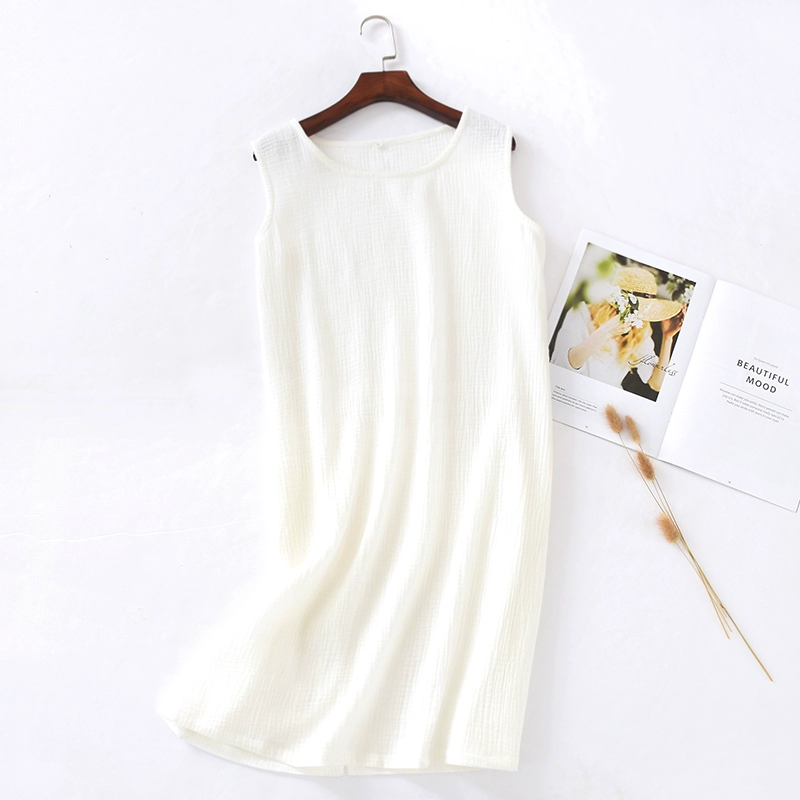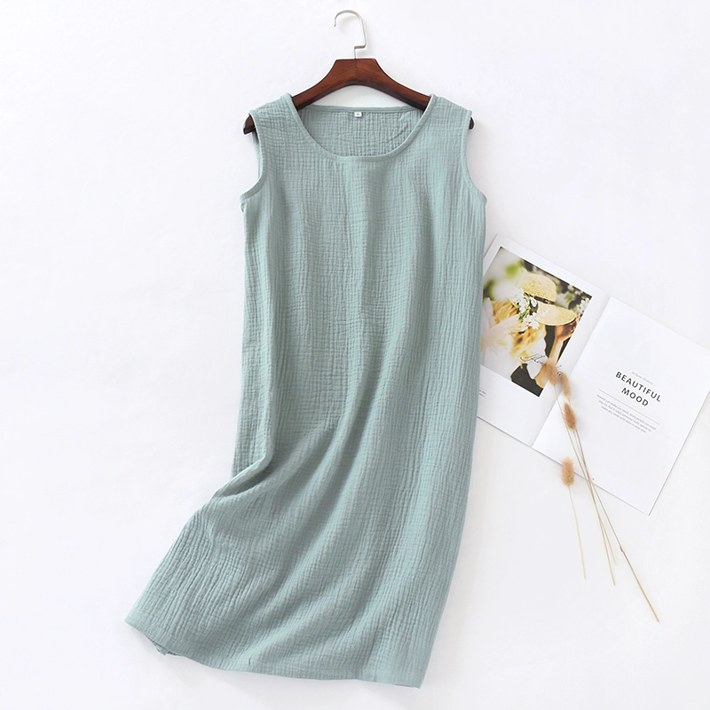| nameOriginal | Sleeveless nightgown for women summer thin pure cotton gauze tank top loose solid color crepe round neck home mid-skirt pajamas |