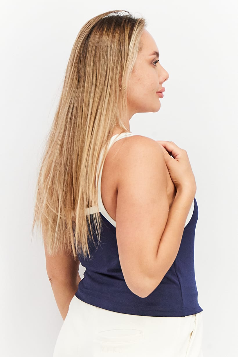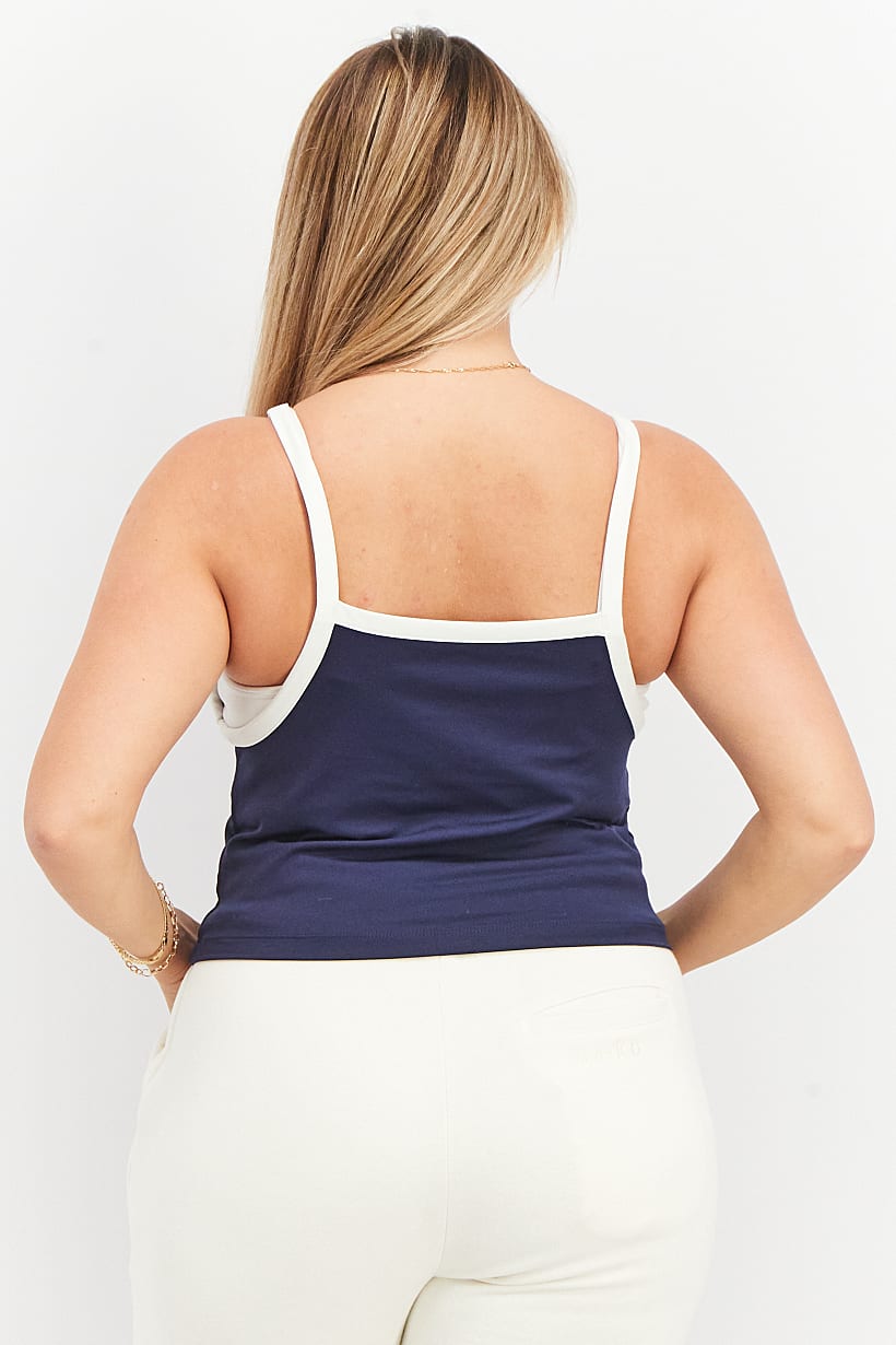 | descriptionOriginal | Care : Machine washable, Fit : Sportswear Fit, Ideal For : Women, Size shown : US, Sleeve Length : Sleeveless, Thickness : Light, Type of Sport : Training, Types of Hem : Straight hem, Types of Neckline & Collar : Square neckline, Types of Sleeve : Sleeveless, Disclaimer : Product color may slightly vary due to photographic lighting sources or your monitor settings., Fabrics : 87% Polyester, 13% Elastane, Occasion : Sport, Pattern & Print : Brand Logo, Sportswear Type : Tops, Types of Closures : Pullover, Color Family : Navy Blue, |