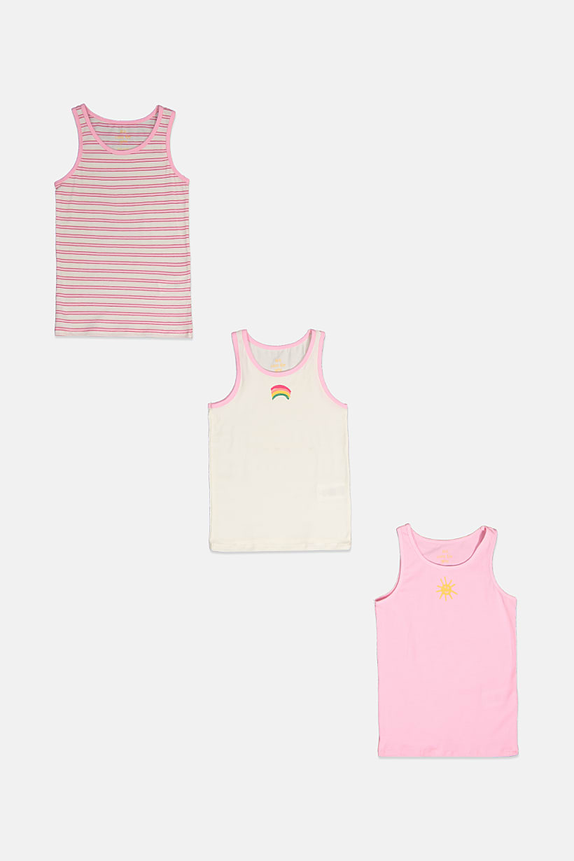 | sub_Categories | Girls Fashion, Girls Tops & Tees, kids girl 3 pieces sleeveless printed top pink combo |