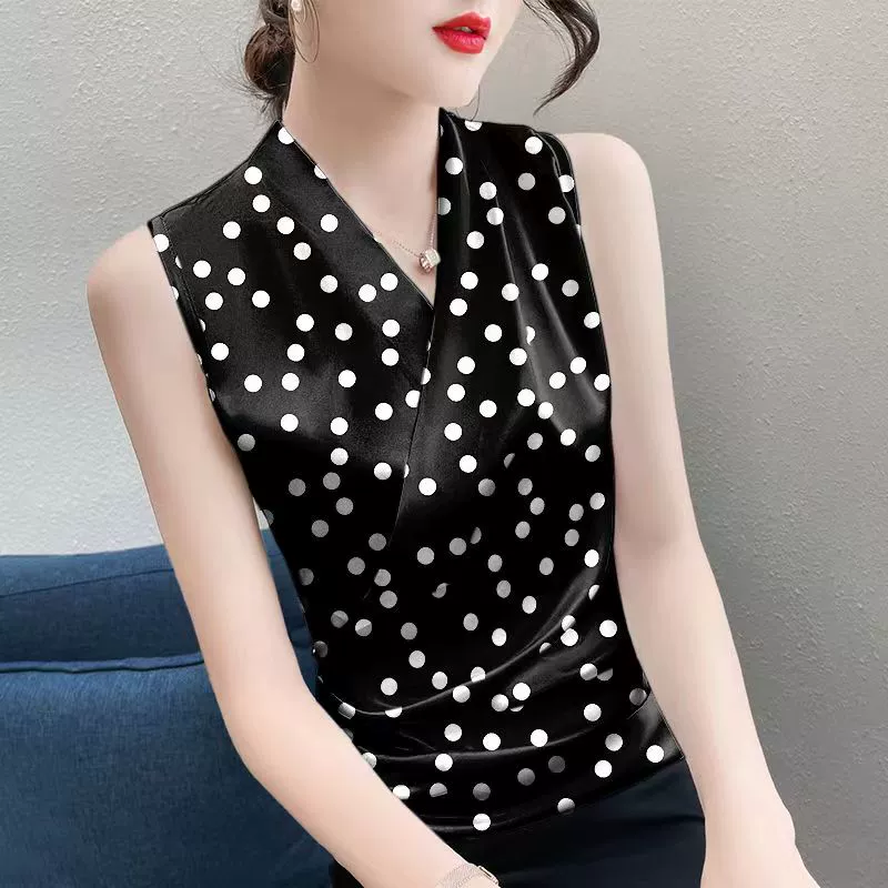 | nameOriginal | Sleeveless slim v-neck stylish polka dot camisole |