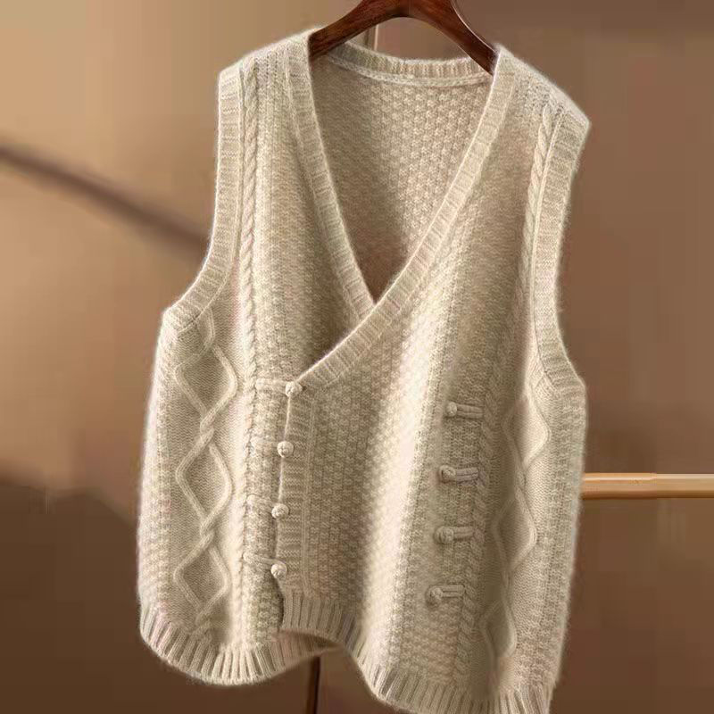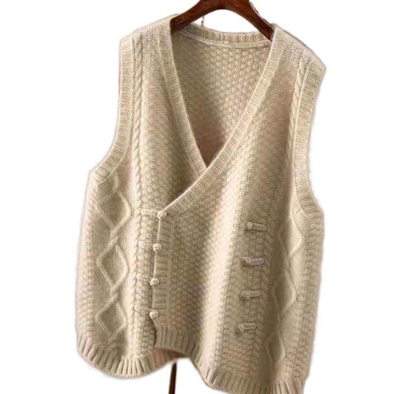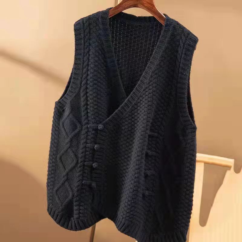 | nameOriginal | Sleeveless Sweater Women's New Chinese-style Buckle Vest Loose V-neck Twisted Double-breasted All-match Knitted Cardigan Vest |