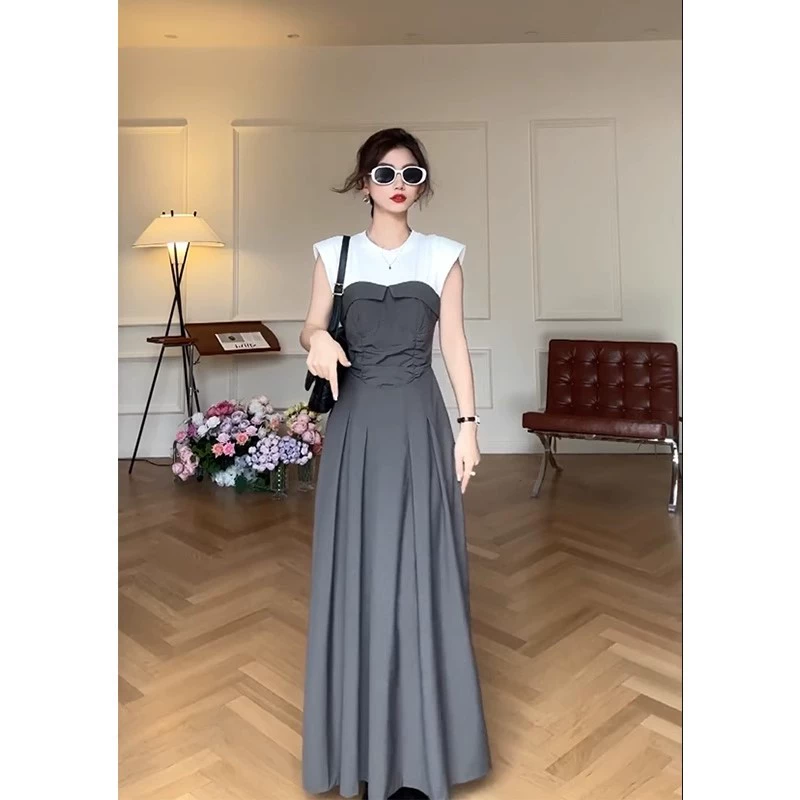 | nameOriginal | Sleeveless temperament French high-end long skirt 2024 summer new skirt fake two-piece small flying sleeve dress women's summer |