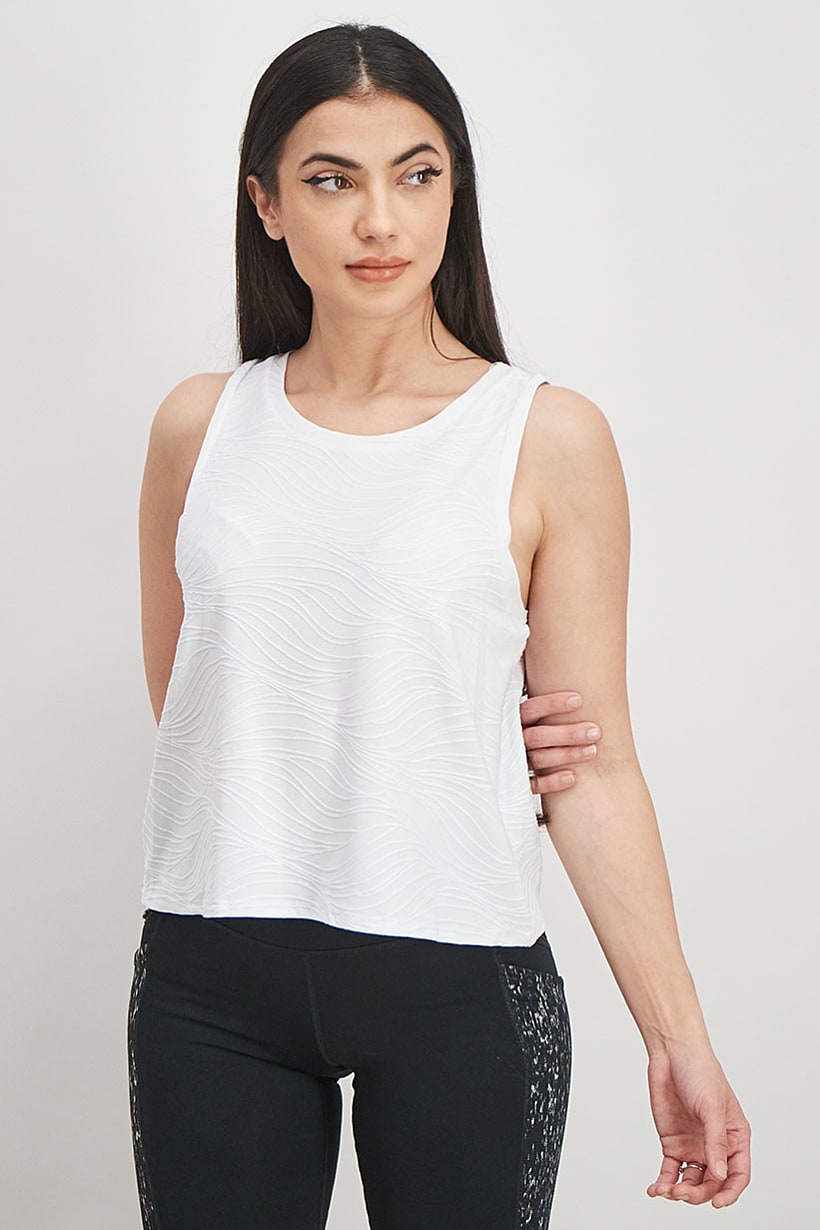 | sub_Categories | Women Clothing, Sportswear, women 2 pieces dport fit sleeveless textured tank top white and blue |