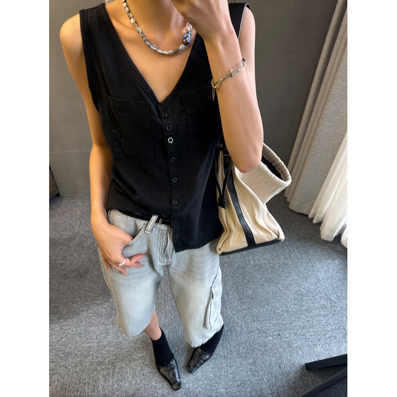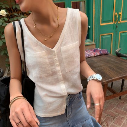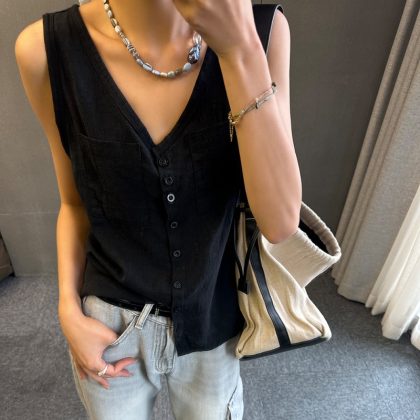 | nameOriginal | Sleeveless Top Summer Vest Women's Light Cotton and Linen Outer Wearing Vest Inner Slimming Loose Waistcoat Chic Pony Clip |