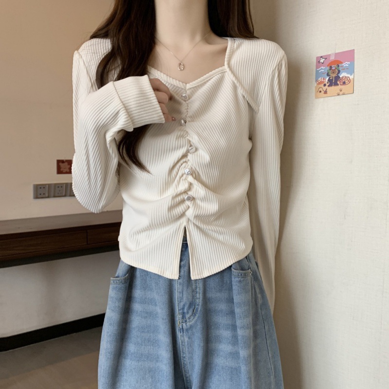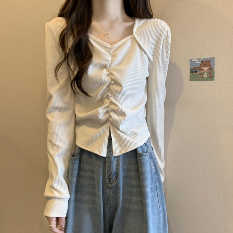 | nameOriginal | Slight Fat Girls Wearing Shoulder Top Women's Spring and Autumn Fat Belly Covering and Flesh Hide Design Sense Slim Collar Base Shirt |