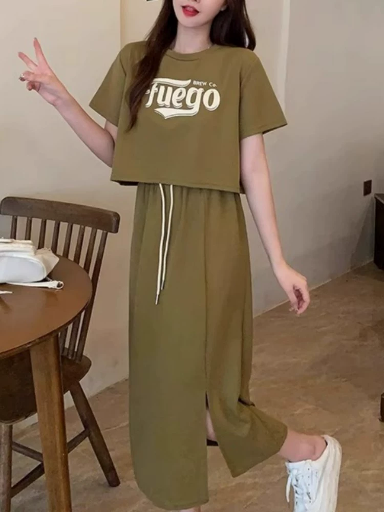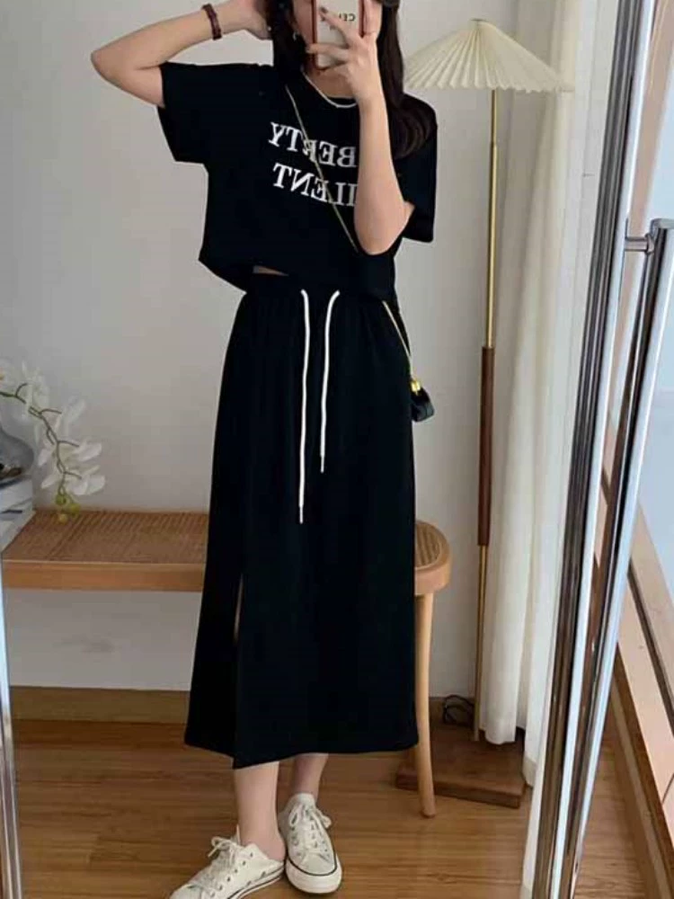 | nameOriginal | Slightly fat large size loose slimming skirt short-sleeved T-shirt |