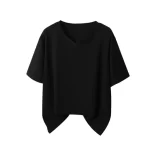 Slightly fat, slim and temperament v-neck t-shirt for women, right shoulder, short-sleeved, summer simple solid color, collarbone exposed loose top, plus size women's clothing