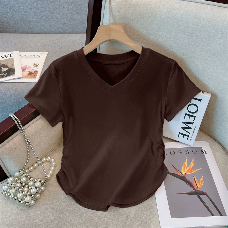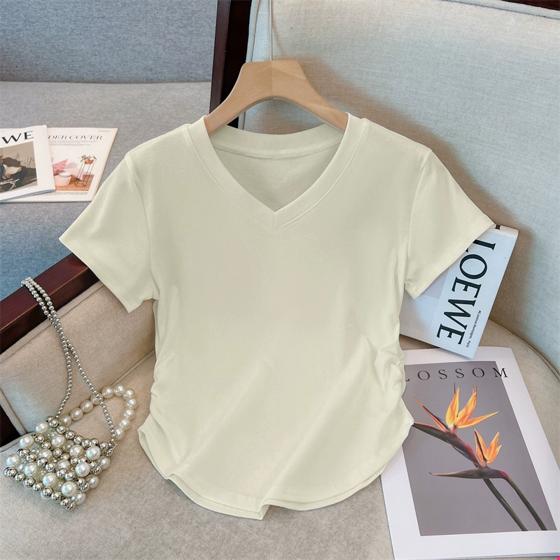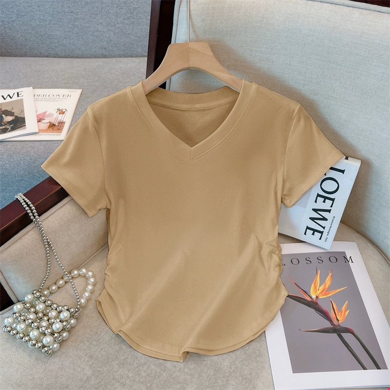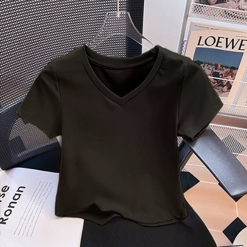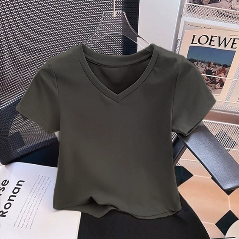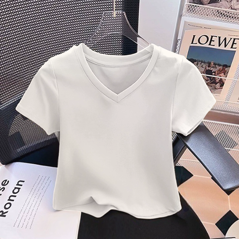 | nameOriginal | Slightly fat v-neck short-sleeved pure cotton thread slim top t-shirt |