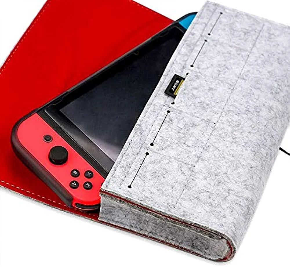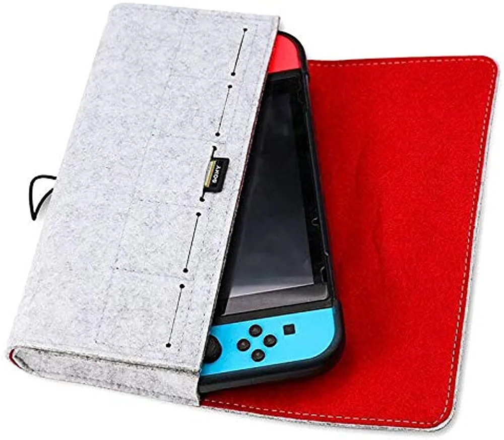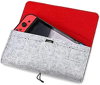 | nameOriginal | AhaStyle Carrying Case for Nintendo Switch, Portable Travel Carrying Bag Ultra Slim Professional Protective Felt Pouch/Bag for Nintendo Switch with 5 Game Cartridges Holders (Switch Logo – Light Gray) |