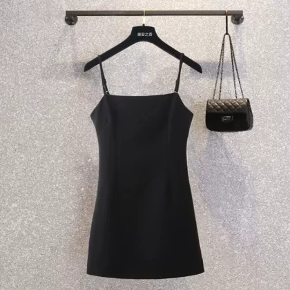 | nameOriginal | Slim and sexy hip-hugging little black suspender dress |
