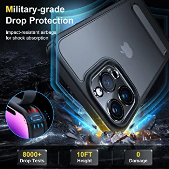 – The case is certified by SGS (MIL-STD-810H) and features upgraded external airbags, a reinforced soft TPU bumper, and shockproof grooves of PC cover to provide optimum drop protection.