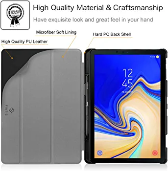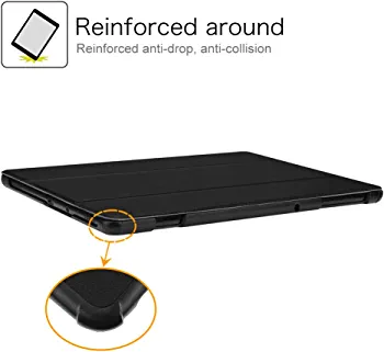 The Fintie Slim Case for Samsung Galaxy Tab S4 10.5 2018 is the perfect accessory for your tablet. This ultra-thin tri-fold stand cover is designed to fit your Samsung Tab S4 10.5 Inch Tablet SM-T830/T835/T837 perfectly. The case is made of high-quality materials that provide excellent protection against scratches, dust, and other types of damage.