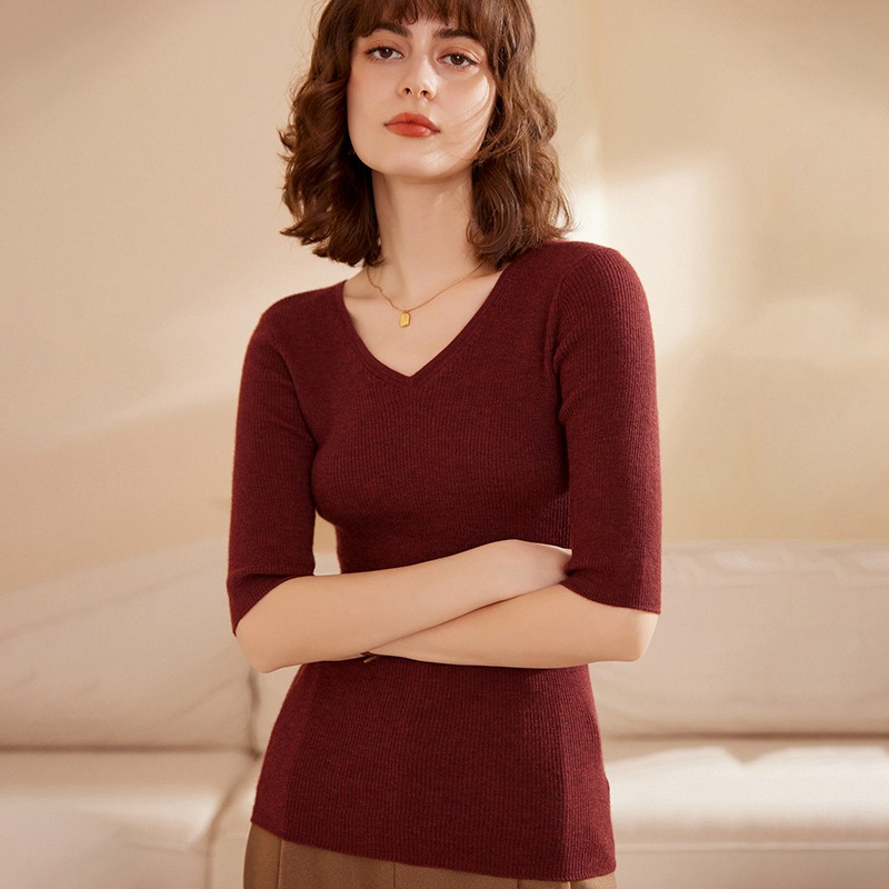 | nameOriginal | Slim-fit half-sleeve fine imitation bottoming shirt sweater women's spring and summer short-sleeved cashmere collar knitted solid color sleeve five-point |