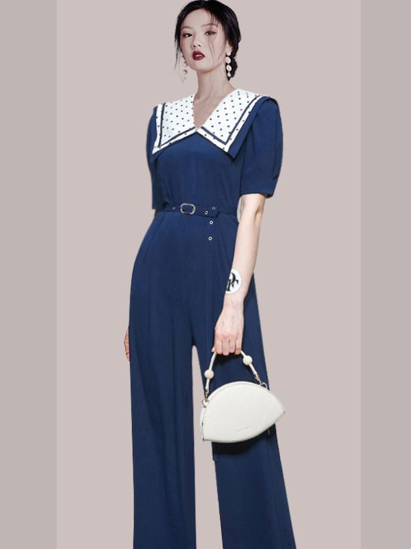 | nameOriginal | Slim-fit High Waist Straight Doll Collar Jumpsuit Cross-border Women's 2023 Korean Style Elegant Socialite Professional Wide-leg Pants Women |