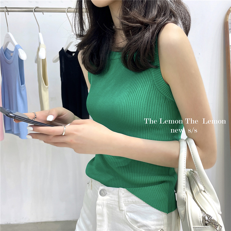 | nameOriginal | Slim fit ribbed knit cropped racerback tank top |