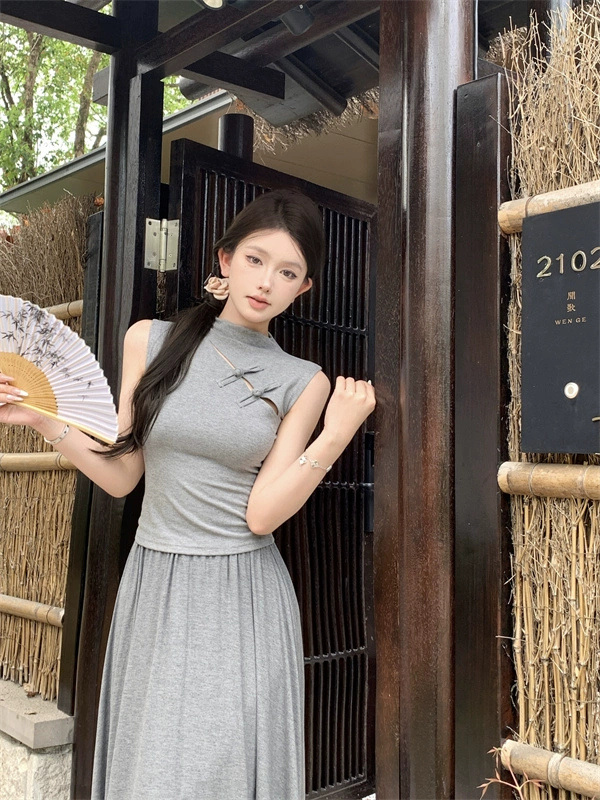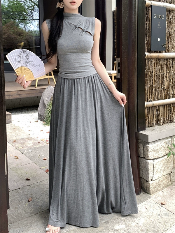 | nameOriginal | Slim fit short sleeveless vest gray two piece set with disc buckle |