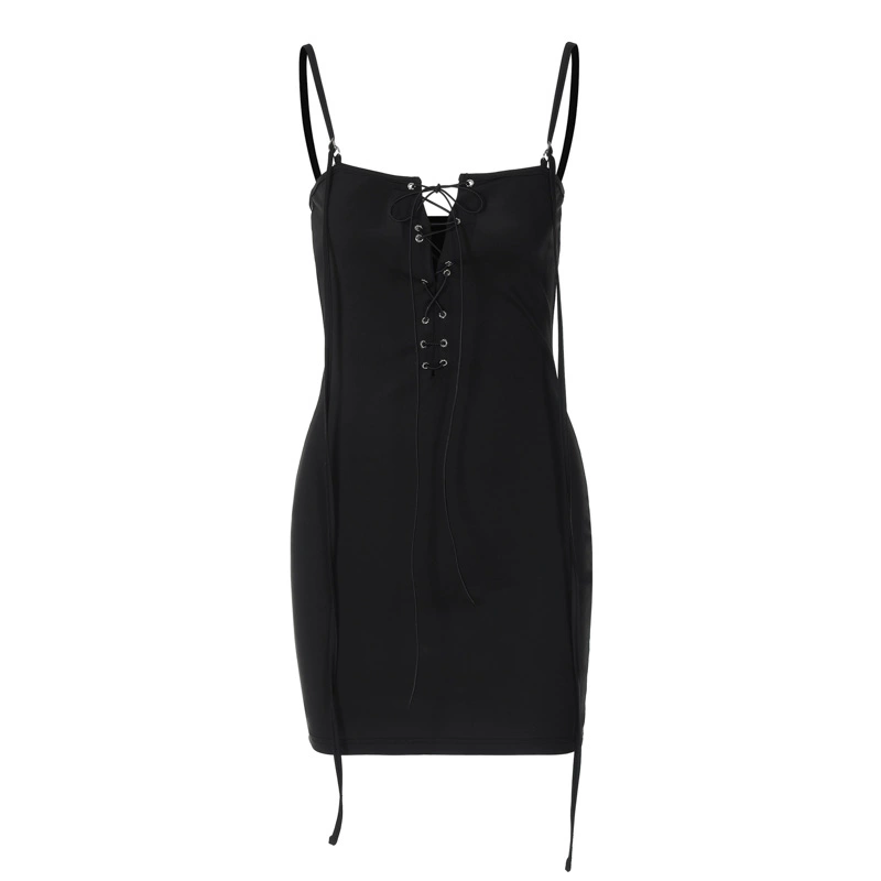 | nameOriginal | Slim-fitting black strappy dress with straps |