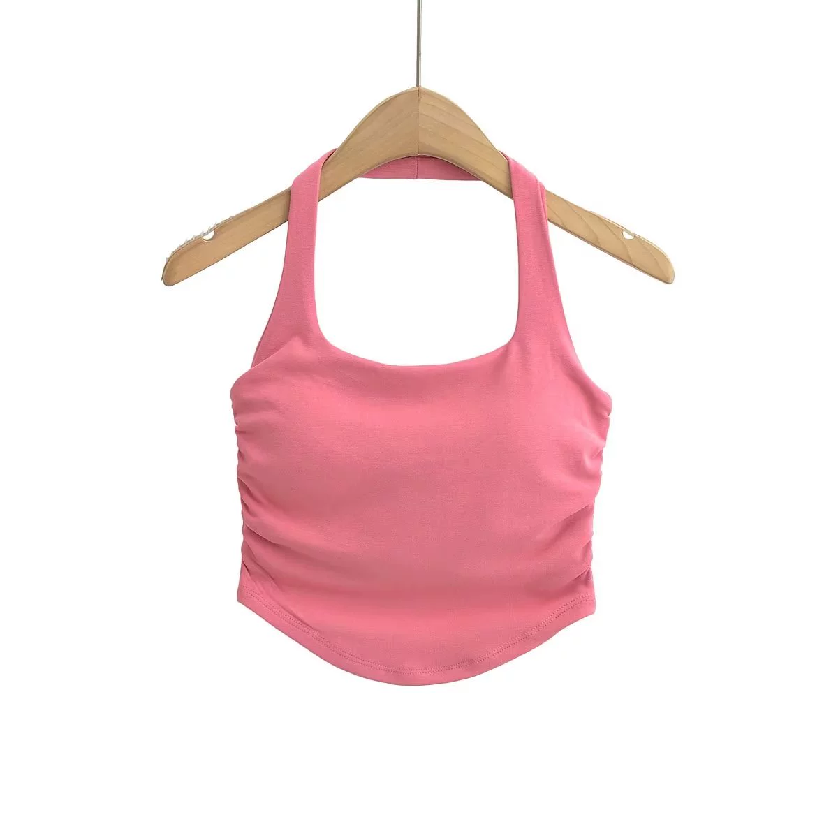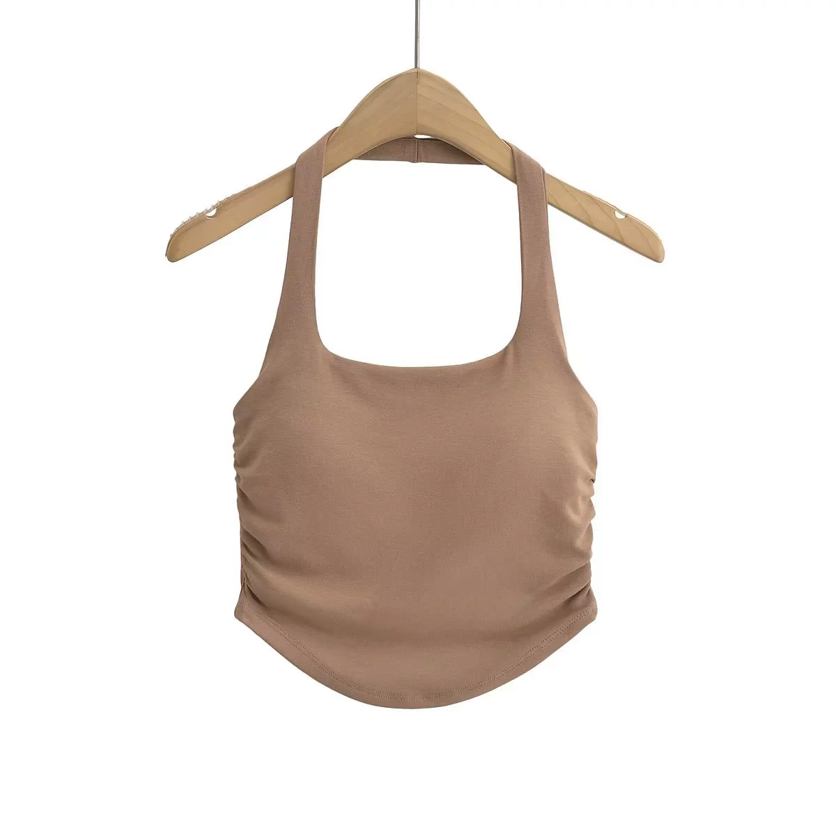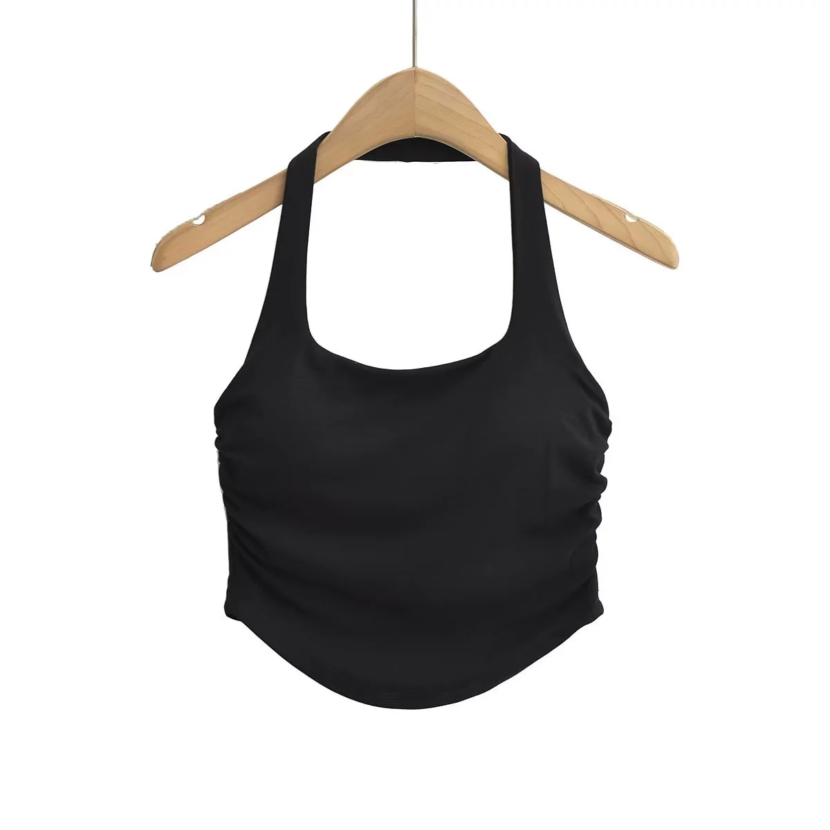 | nameOriginal | Slim-fitting shirred curved hem midriff-baring halterneck with bust pads |