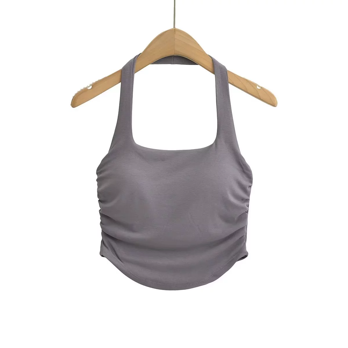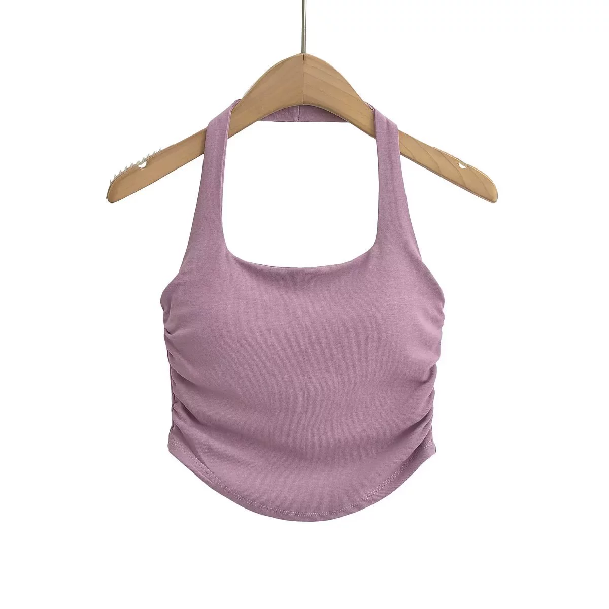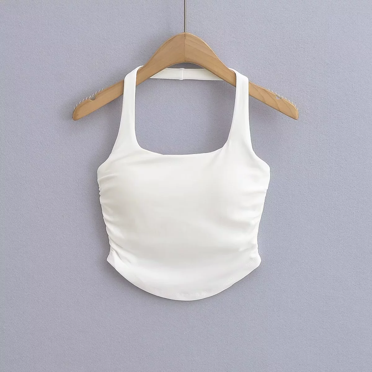 | nameOriginal | Slim-fitting shirred curved hem midriff-baring halterneck with bust pads |