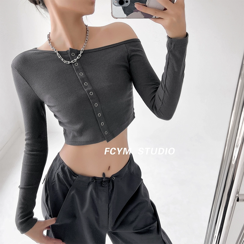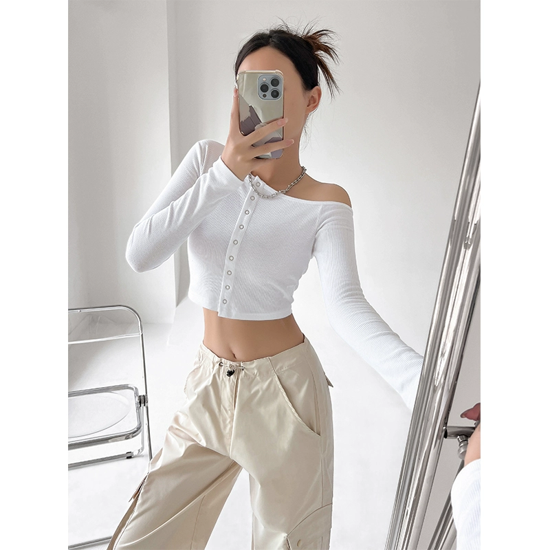 | nameOriginal | Slim-fitting slanted shoulder design niche top long-sleeved T-shirt |