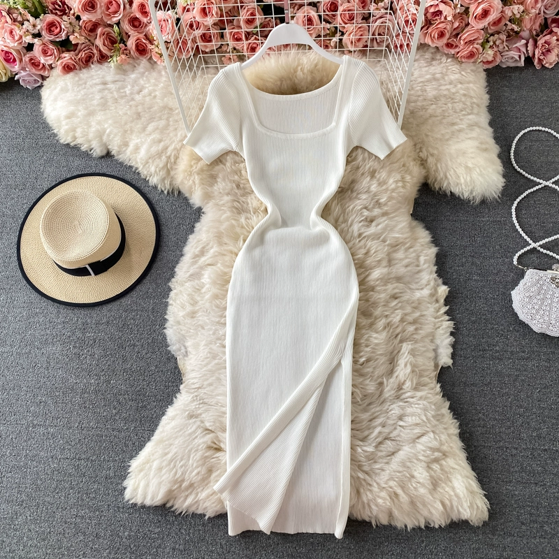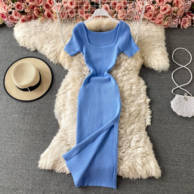 | nameOriginal | Slim-fitting spring and summer square neck slit little black dress |