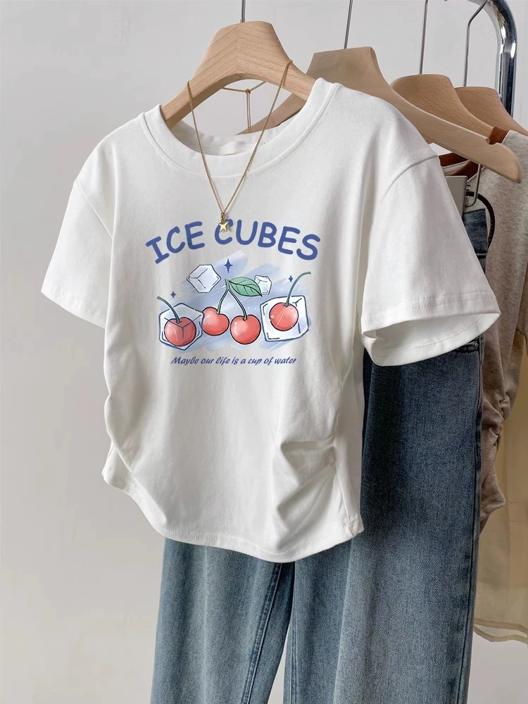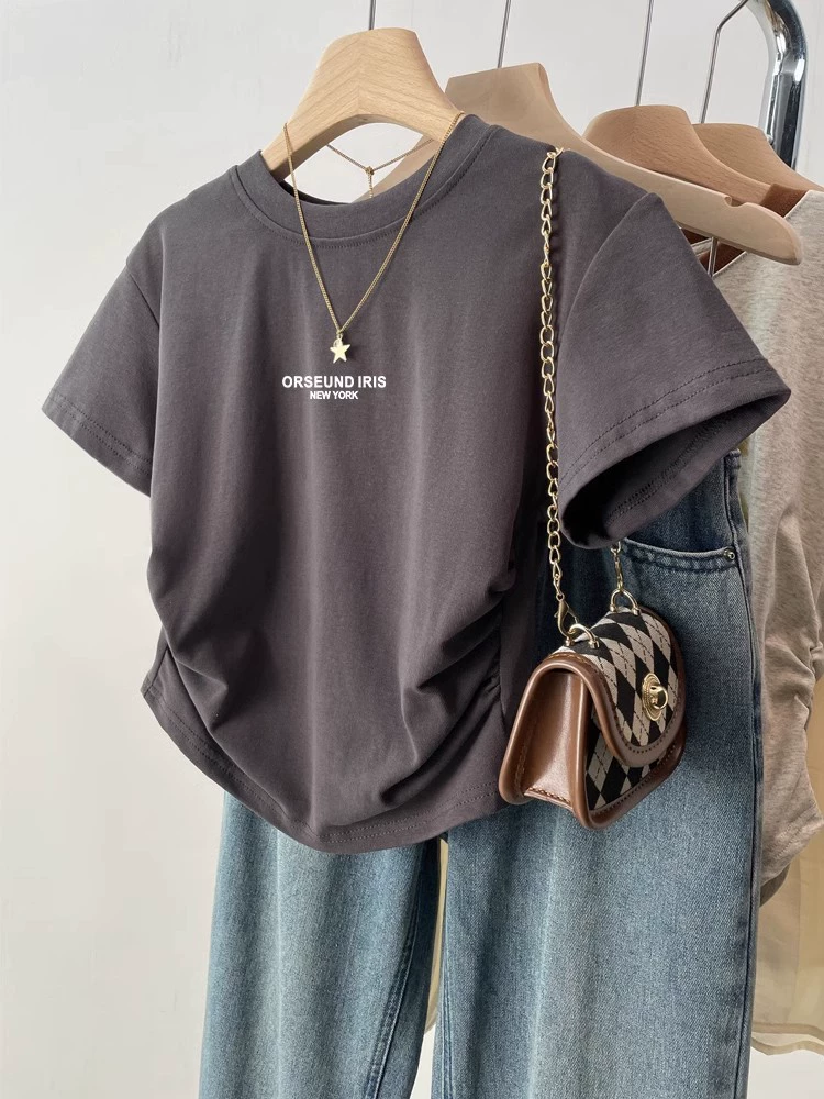Slim-fitting waist slimming trendy short-sleeved T-shirt