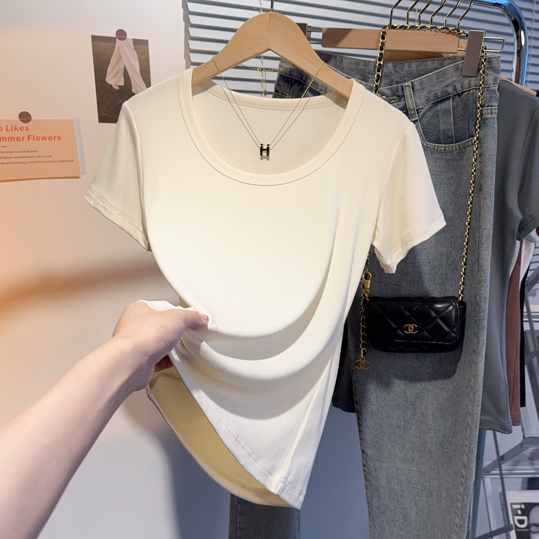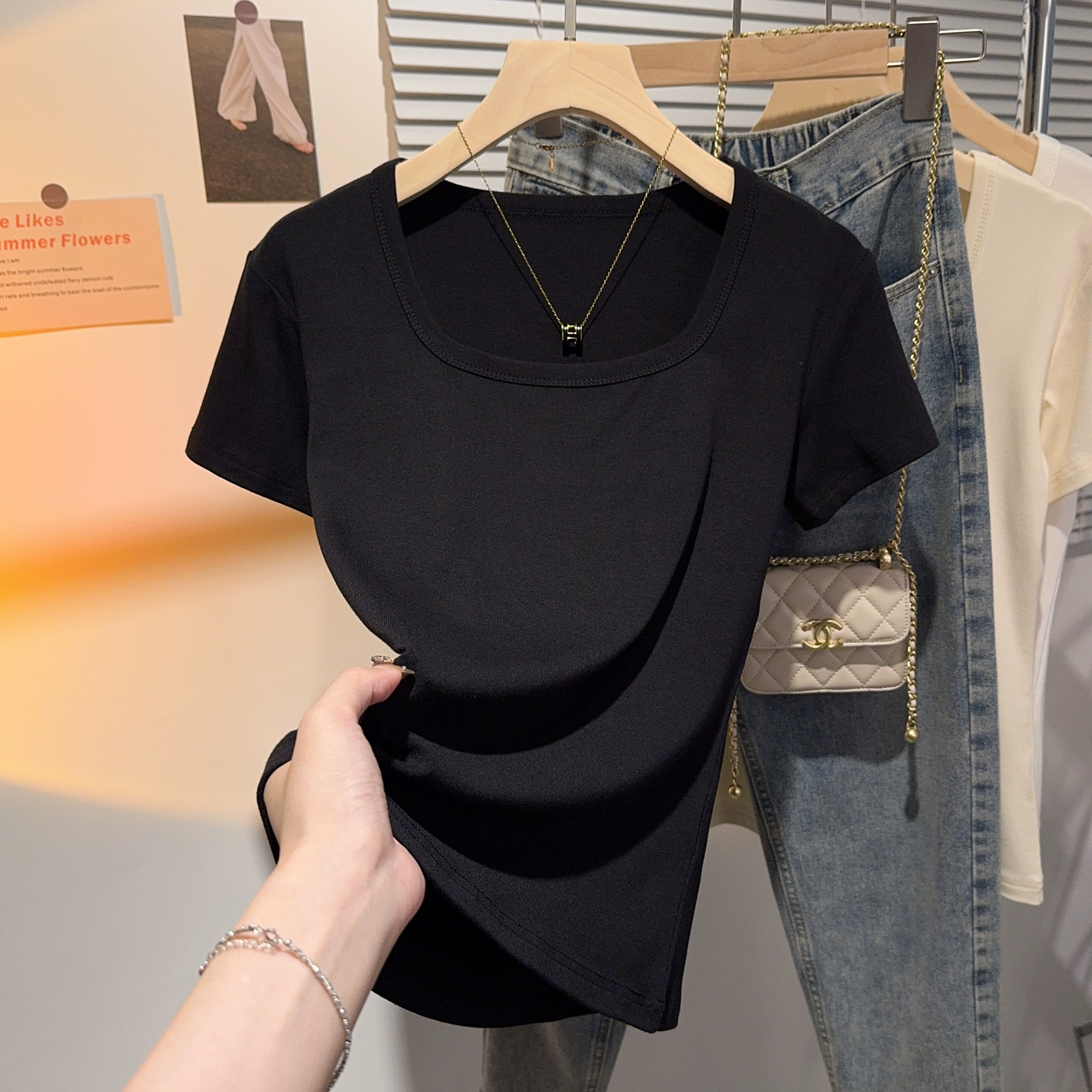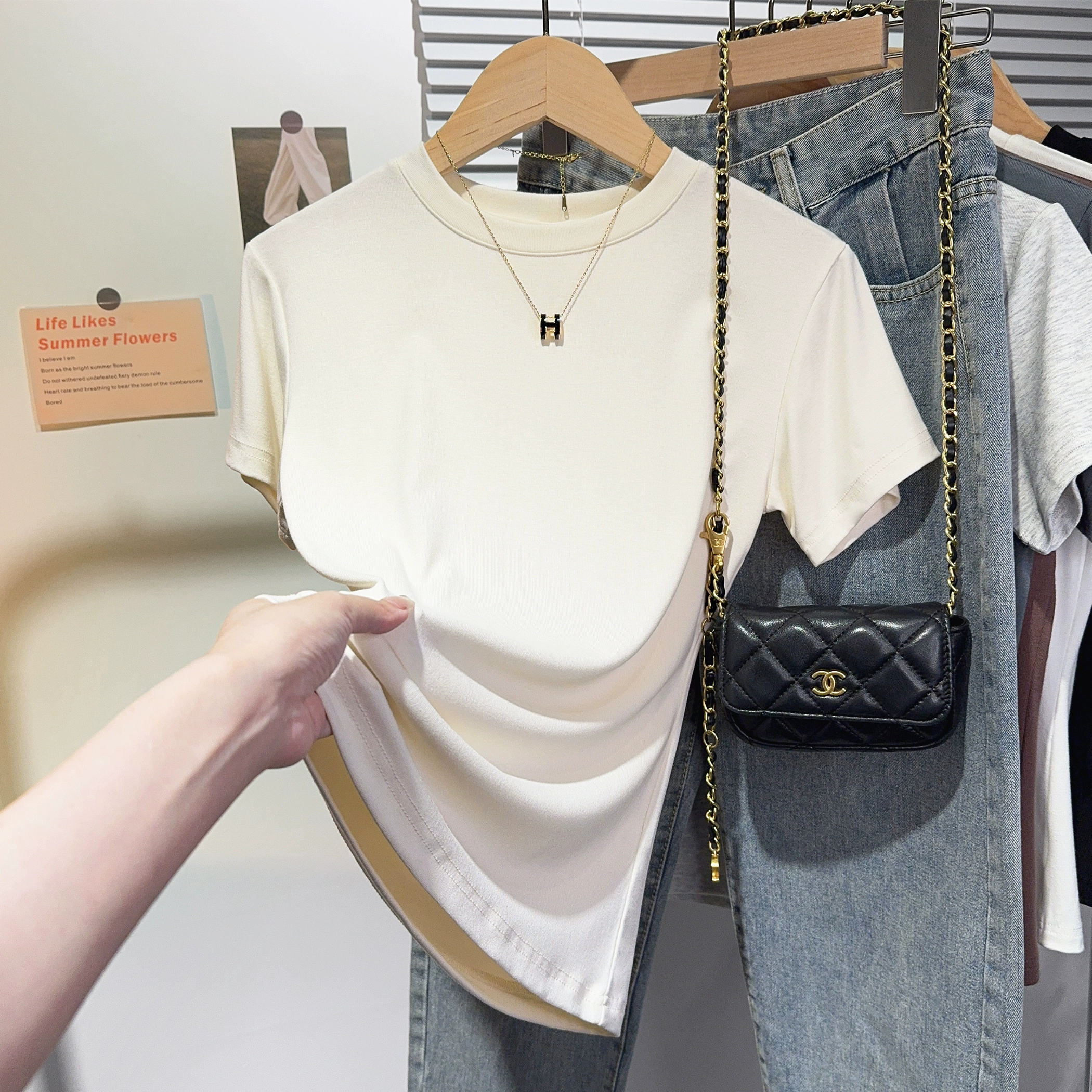 | nameOriginal | Slim-fitting white short-sleeved t-shirt ribbed knit top |