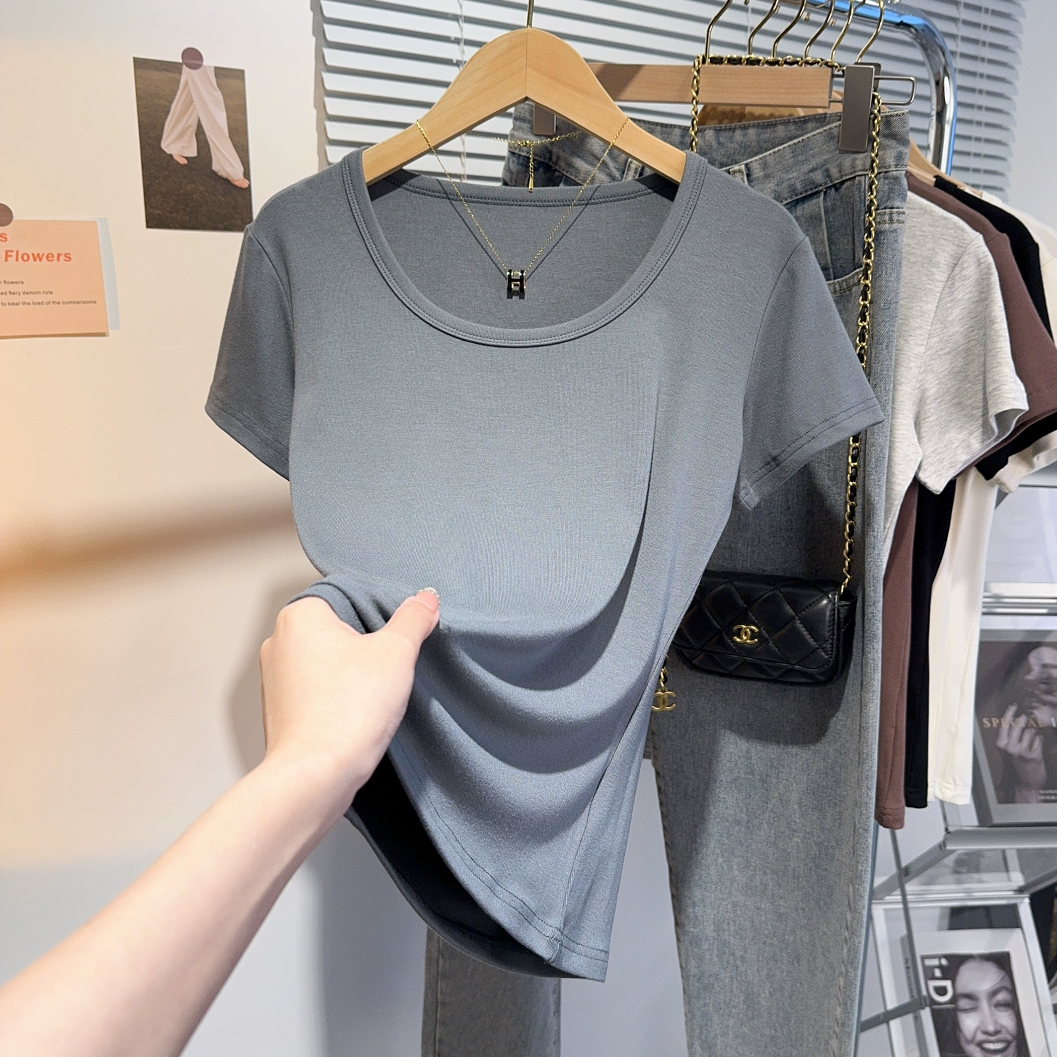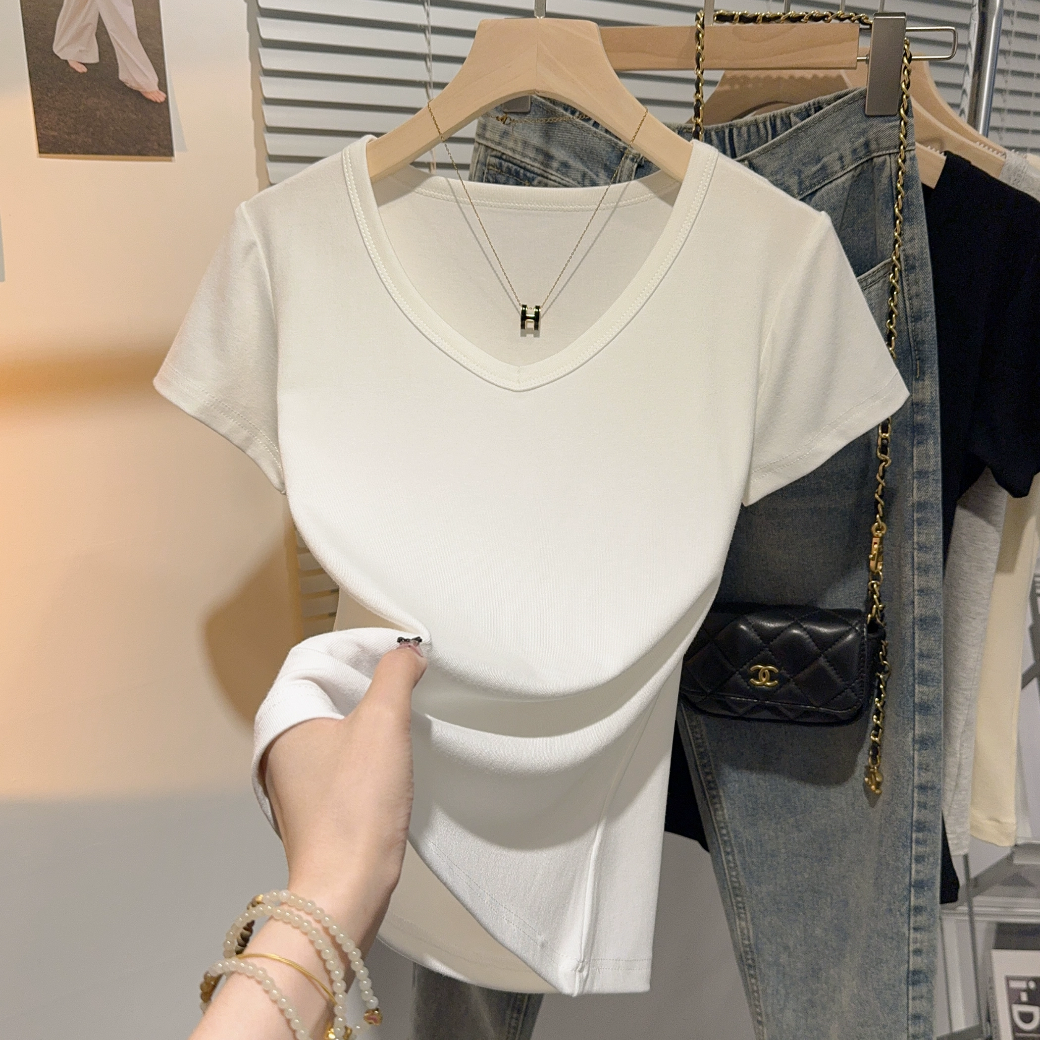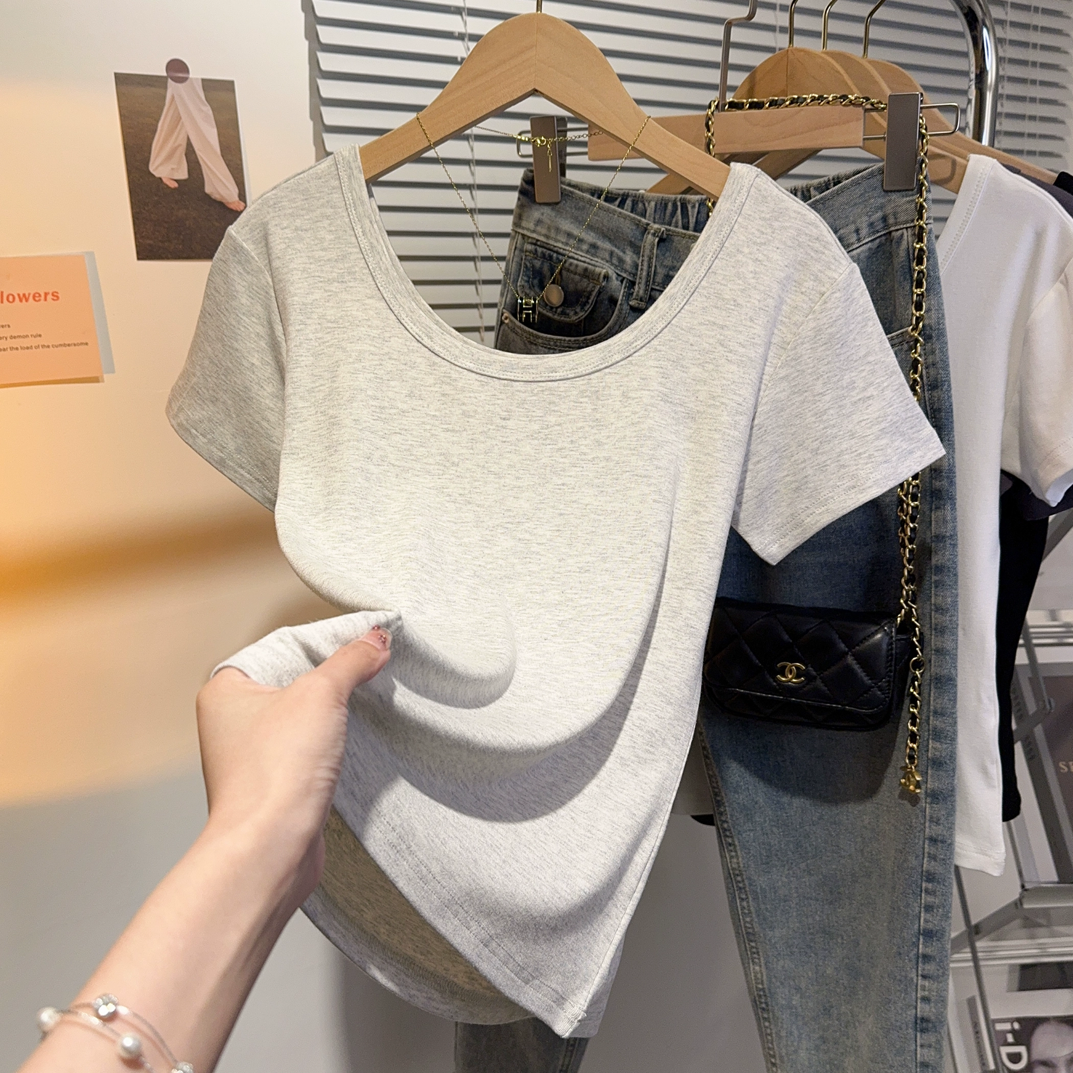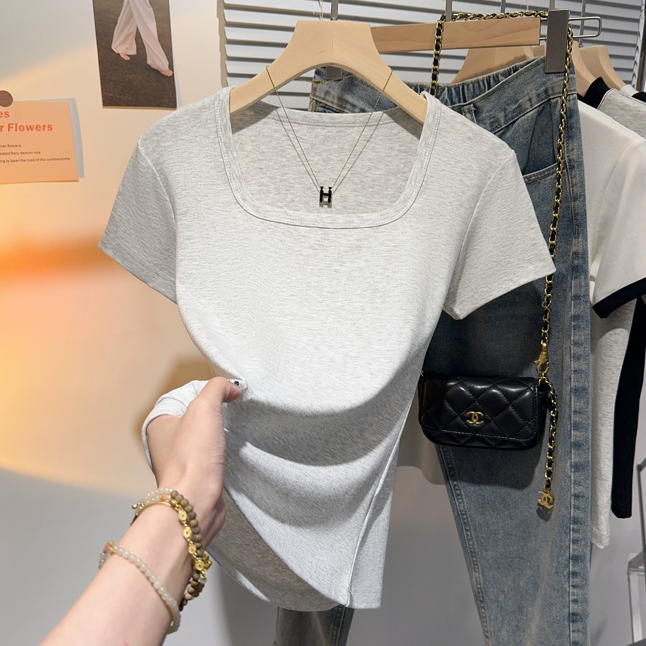 | nameOriginal | Slim-fitting white short-sleeved t-shirt ribbed knit top |
