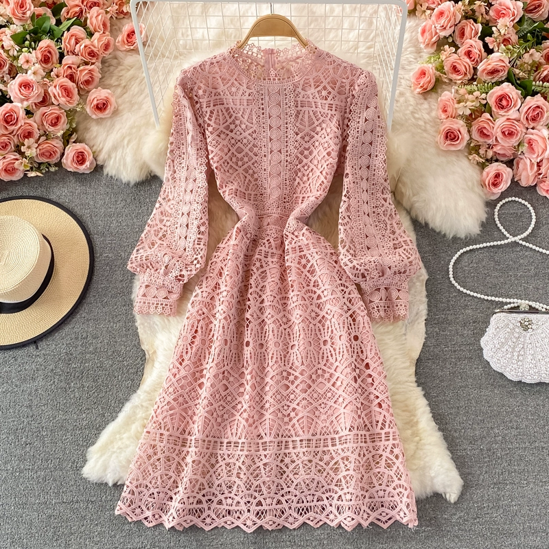 | nameOriginal | Slim high waisted hollow water soluble lace dress |