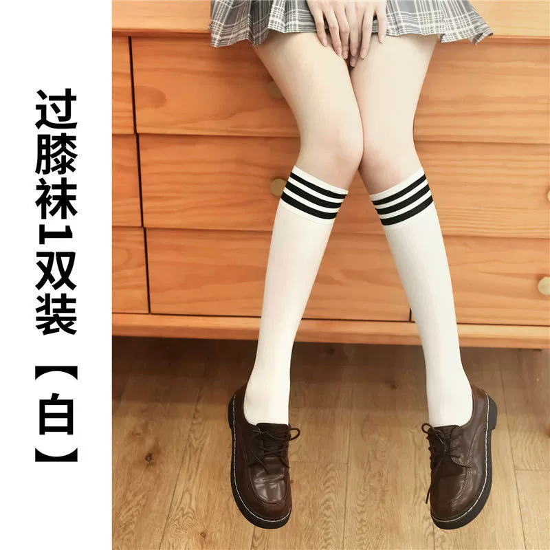 | nameOriginal | Slim leg calf socks for female students, thin over-the-knee socks, cute Japanese mid-length stockings, white striped velvet trendy |