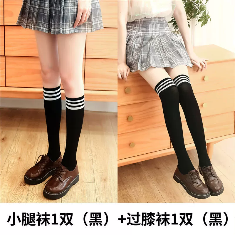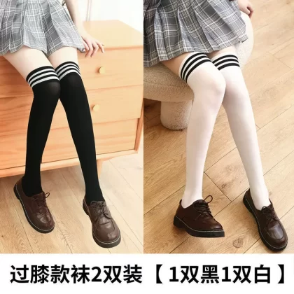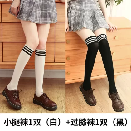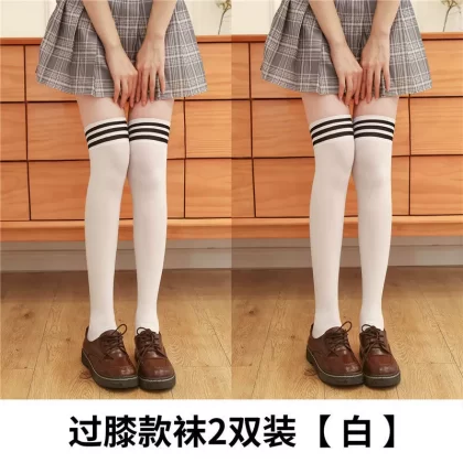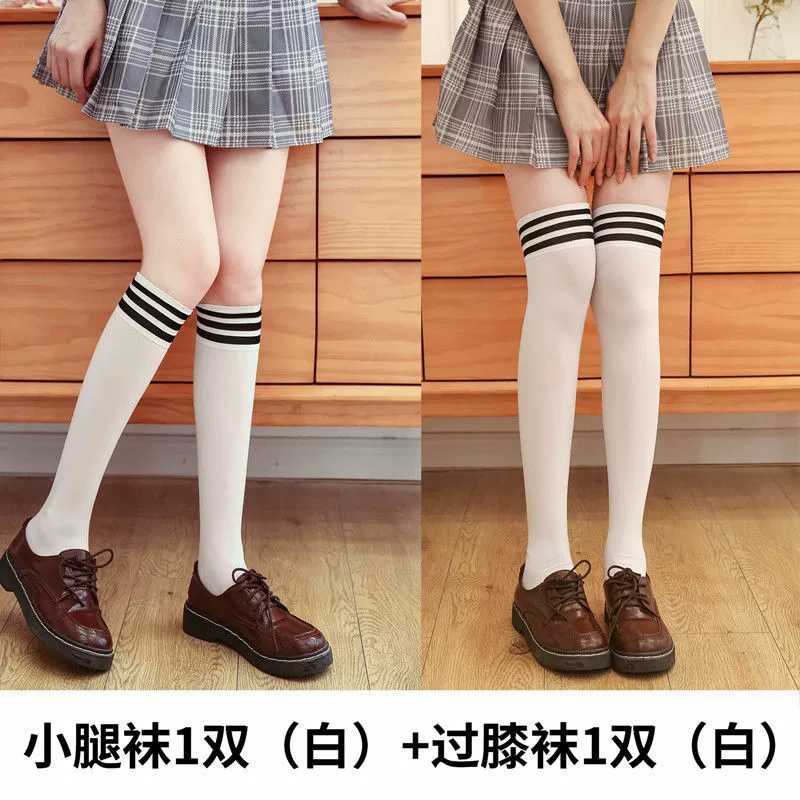 | nameOriginal | Slim leg calf socks for female students, thin over-the-knee socks, cute Japanese mid-length stockings, white striped velvet trendy |