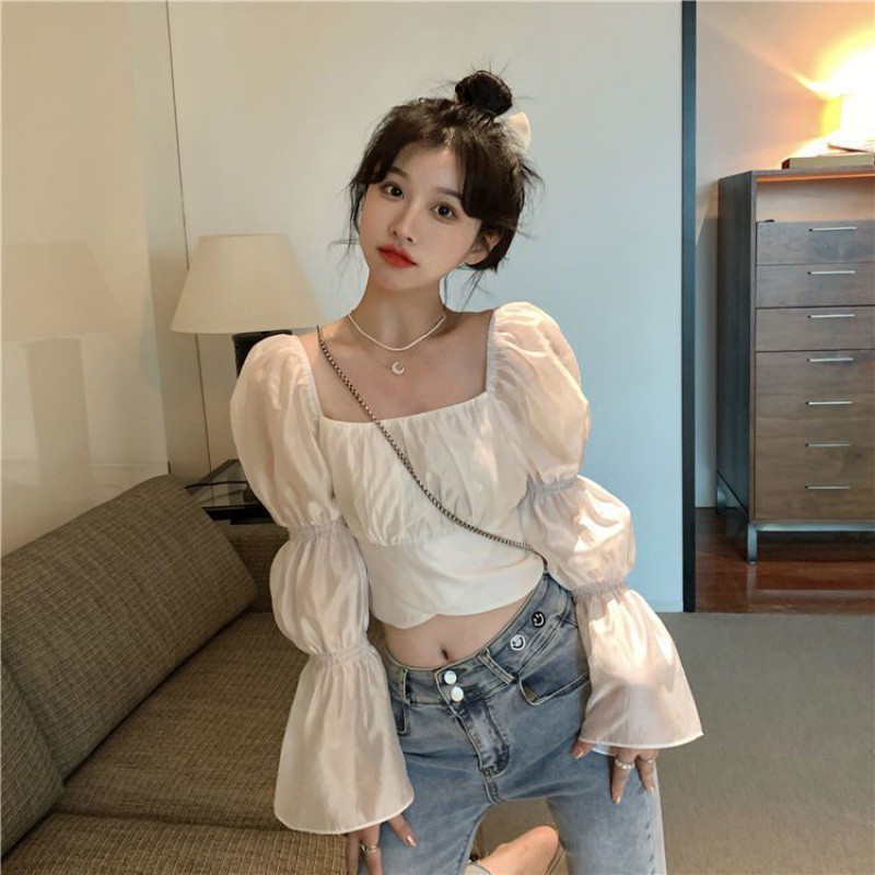 | nameOriginal | Slim Puff Sleeve Short Top Women's Design Sense Niche Early Autumn 2024 New Super Fairy French Style Long Sleeve Small Shirt |