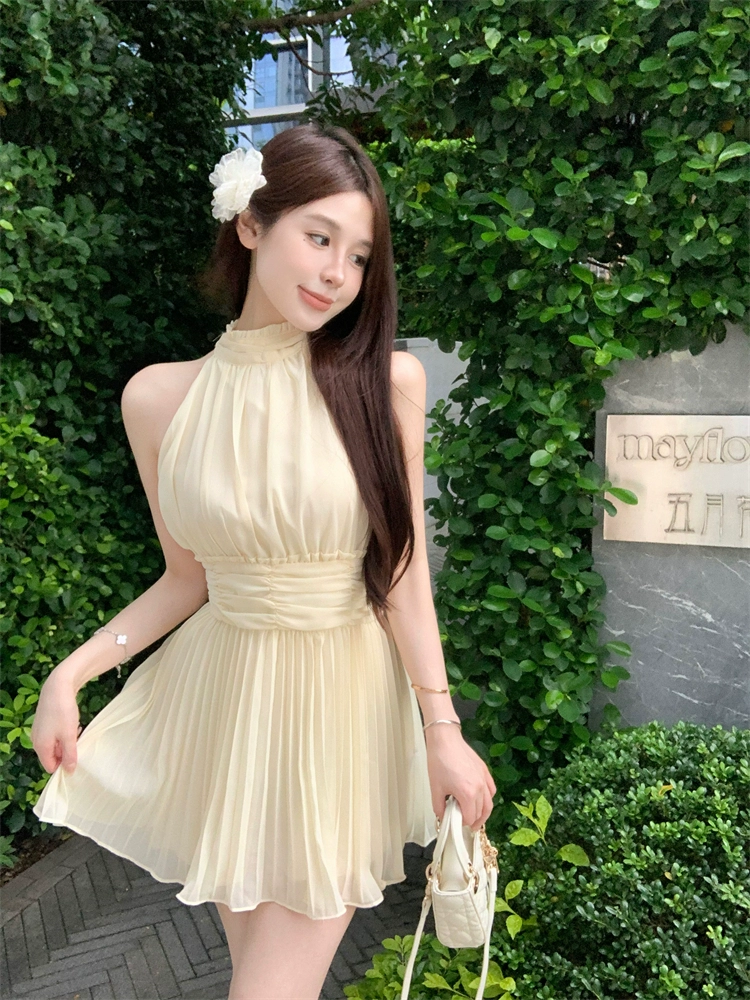 Slim shoulder-cut chiffon dress for summer slimming halter neck