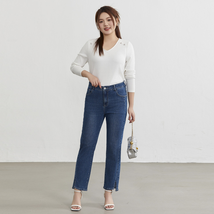 | nameOriginal | Slim show 2023 Autumn New plus size women's clothing chubby girl pear-shaped high waist slimming straight split jeans |
