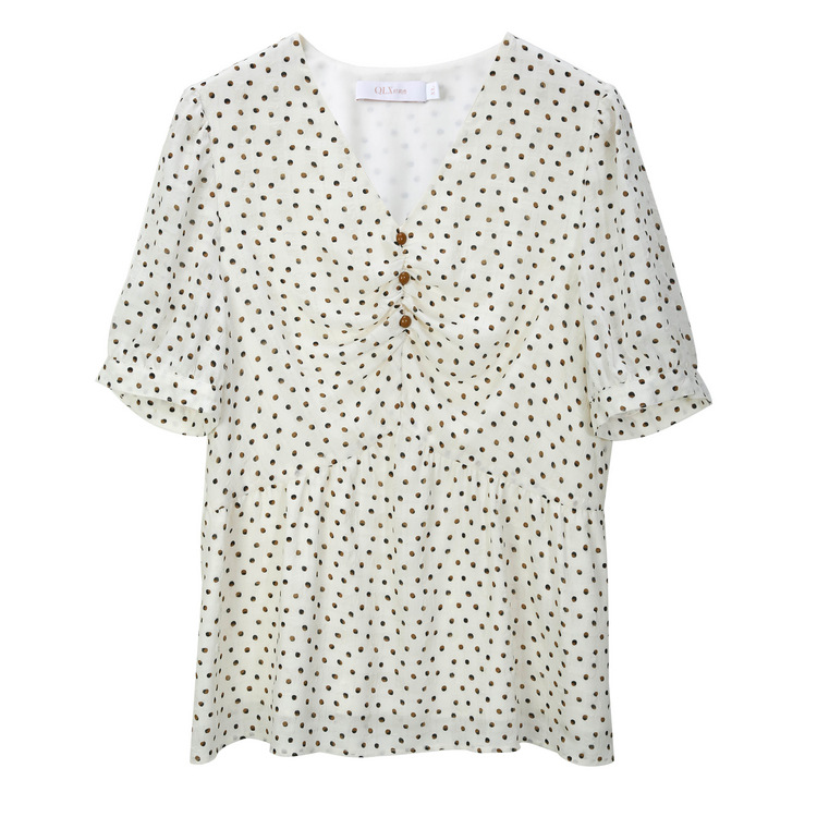 Slim Show plus size Women's French Niche Elegant Slim Look All-match Poll Dot V-neck Shirt Chubby mm2024 Summer New