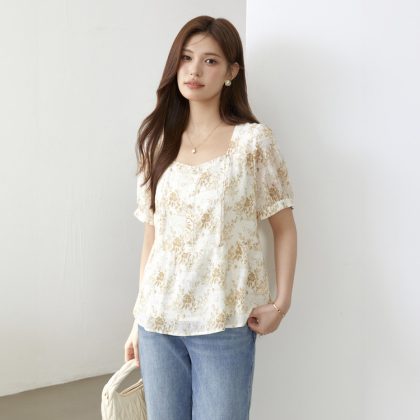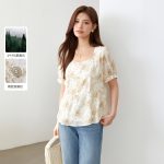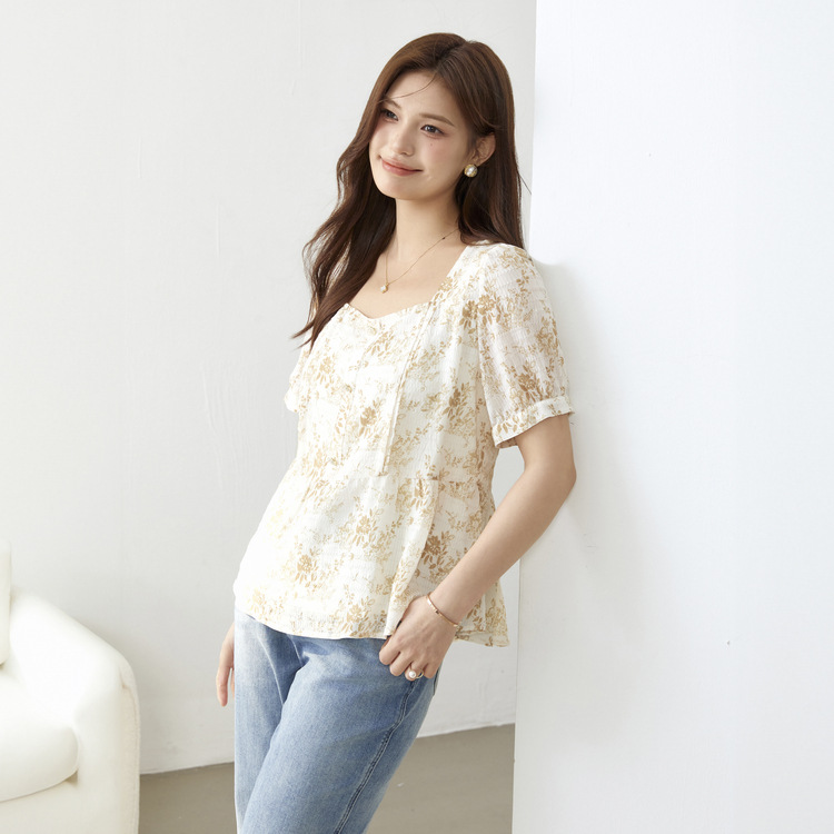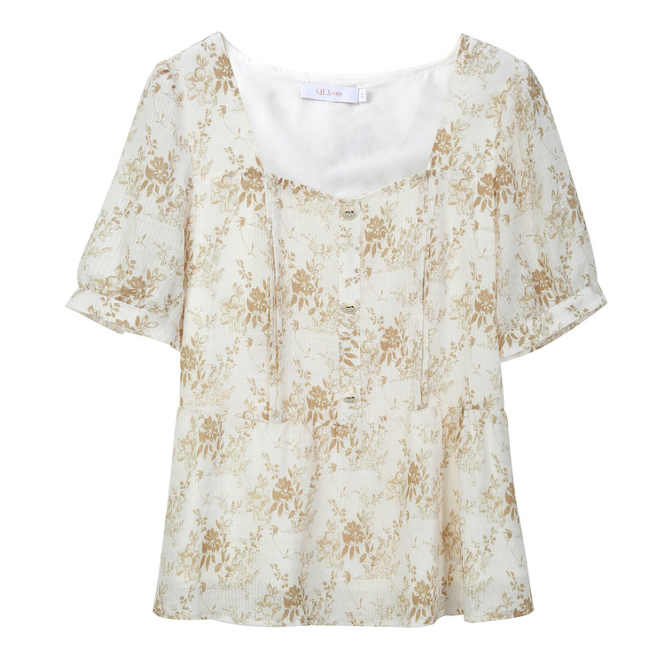 | nameOriginal | Slim Show plus size Women's French Retro Square Neck Texture Sense Printed Tencel Shirt Chubby mm2024 Summer New |