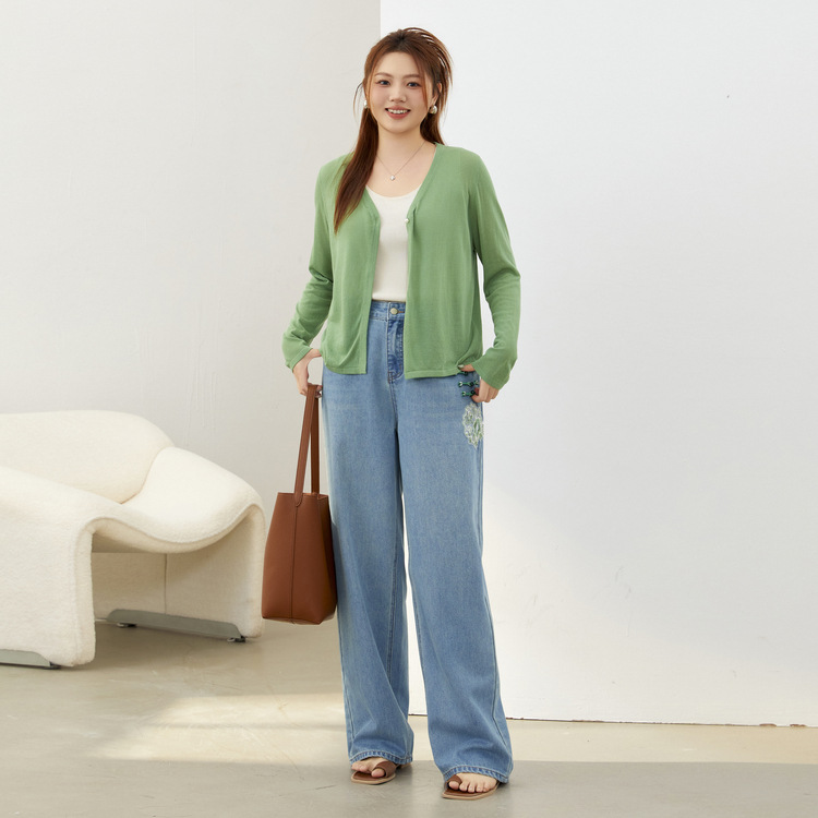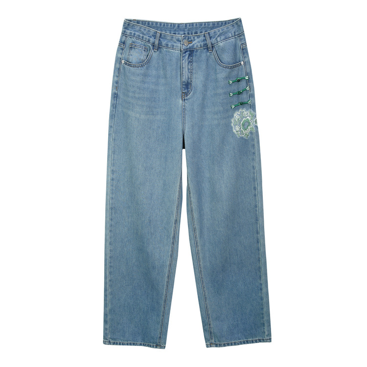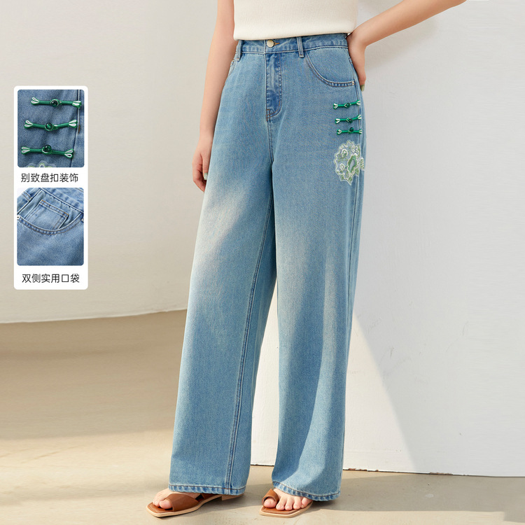Slim Show plus size Women’s Wear Design Sense New Chinese-style Hip Cover Slimming Jeans Chubby mm2024 Summer New